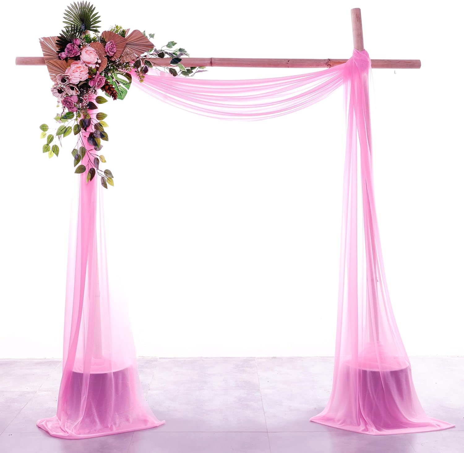 VDS Pack of 2 Panel (30 Inch X 40 Feet) Wedding Arch Draping Fabric Sheer Chiffon Fabric Drapery for Wedding Ceremony Reception Swag Backdrop Canopy Chuppah ARBO Altars Decoration (Bubblegum)