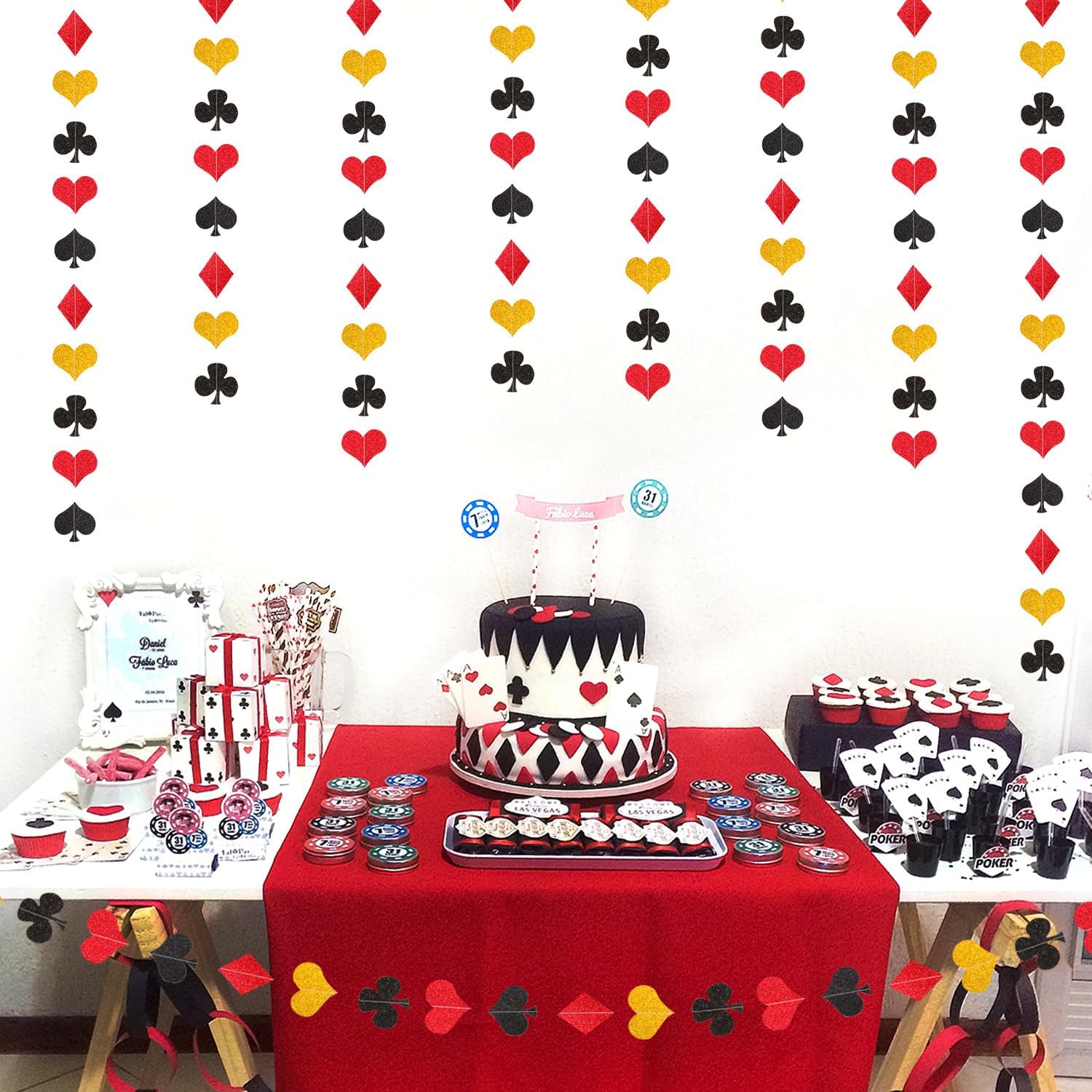 • 【Wide Use】These streamers garlands are great for indoor and outdoor events such as casino theme party decorations,game night party , poker party,red birthday decor.