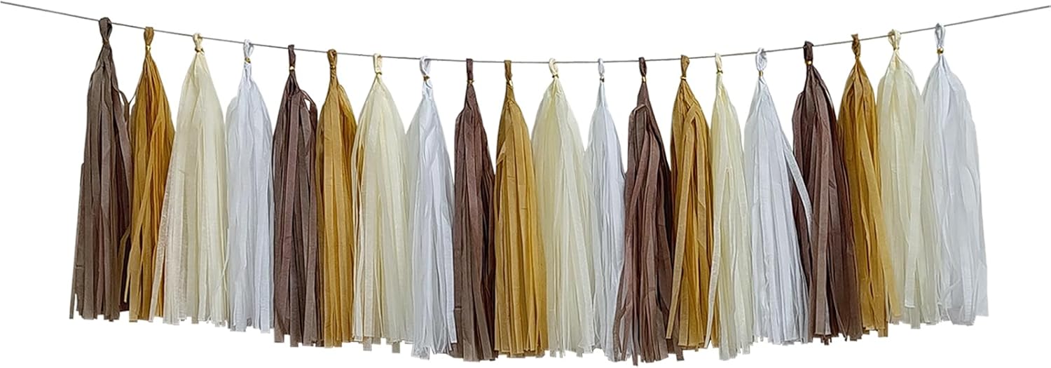 ZOOYOO Brown Tassel Garland Tissue Paper Tassel Banner, Boho Table Decor,DIY Kits for Rustic Neutral Western Graduation Party, Tassels Birthday Party Decoration,Pack of 20