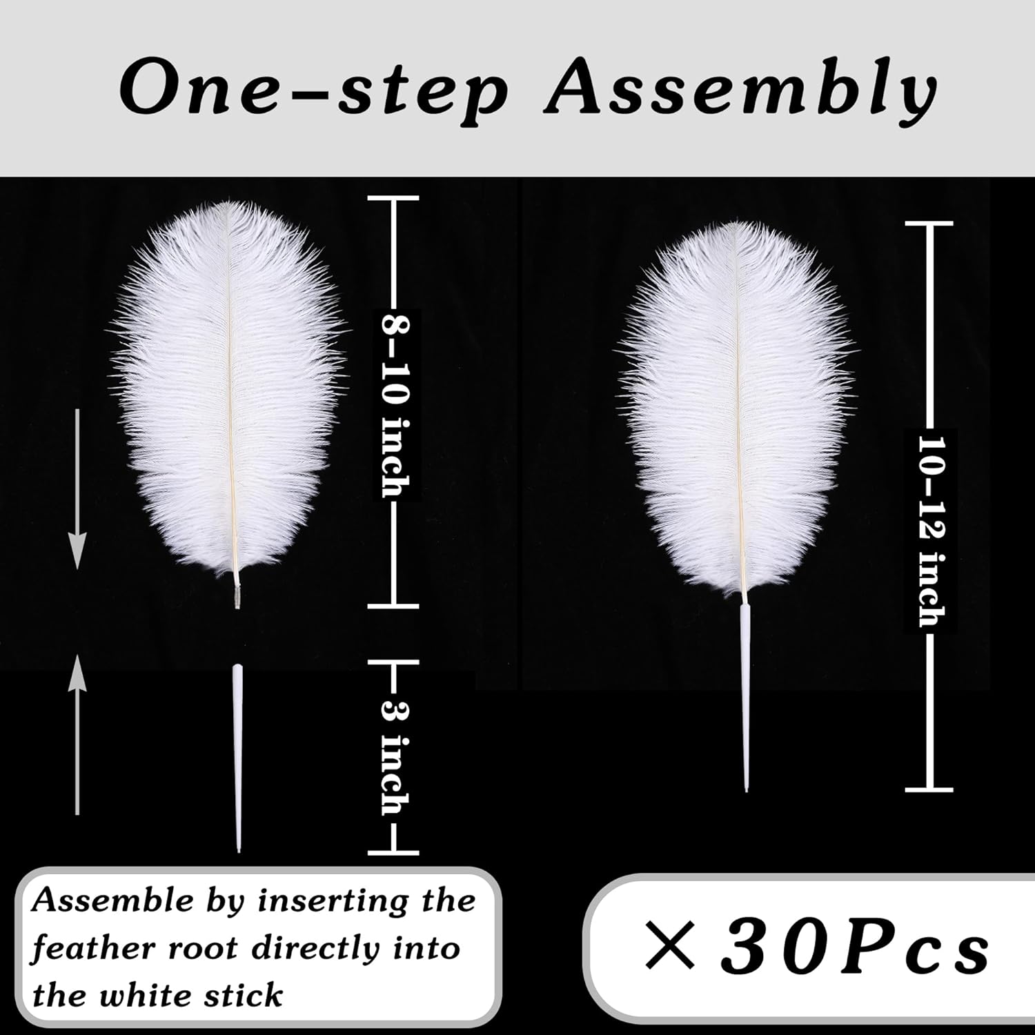 • Easy to Assemble: The craft ostrich feathers can be inserted directly into the white sticks without the need for tape to assist in fixing them, convenient and quick, get a better presentation with the same length of craft ostrich feathers