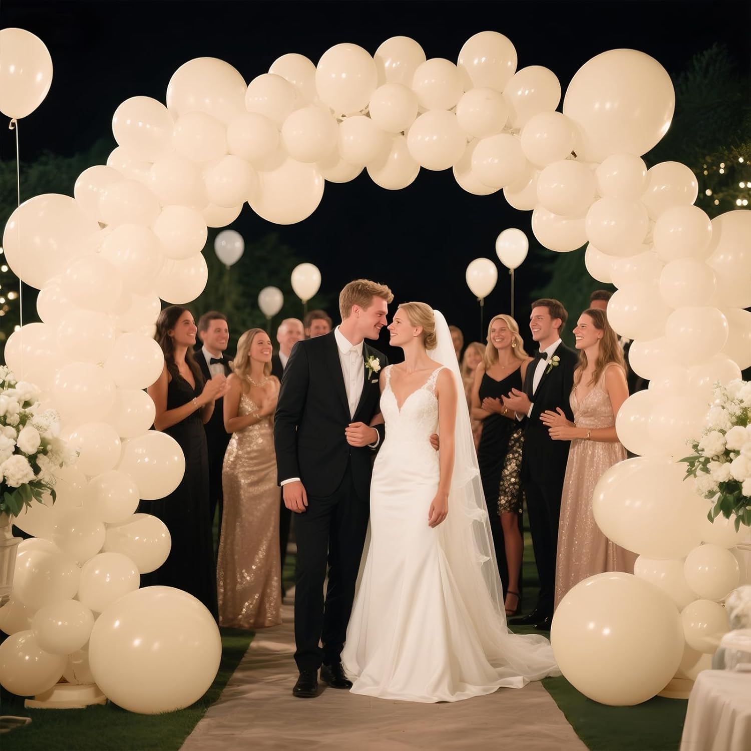 • 110-Count 12" Sand White Latex Balloons: Premium bulk pack of 110 neutral-toned 12-inch balloons—ideal for weddings, minimalist parties, or upscale brand activations with understated elegance.