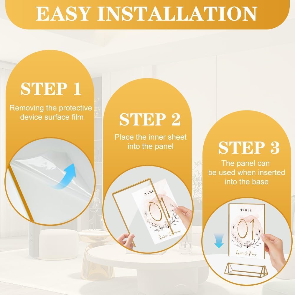 • Insert Design and Drop-resistant: Designed to withstand the demands of daily use, our wedding gold table number holders are drop-resistant and highly stable. The bottom of the acrylic display stand is designed with triangular slot inserts for easy assembly or disassembly