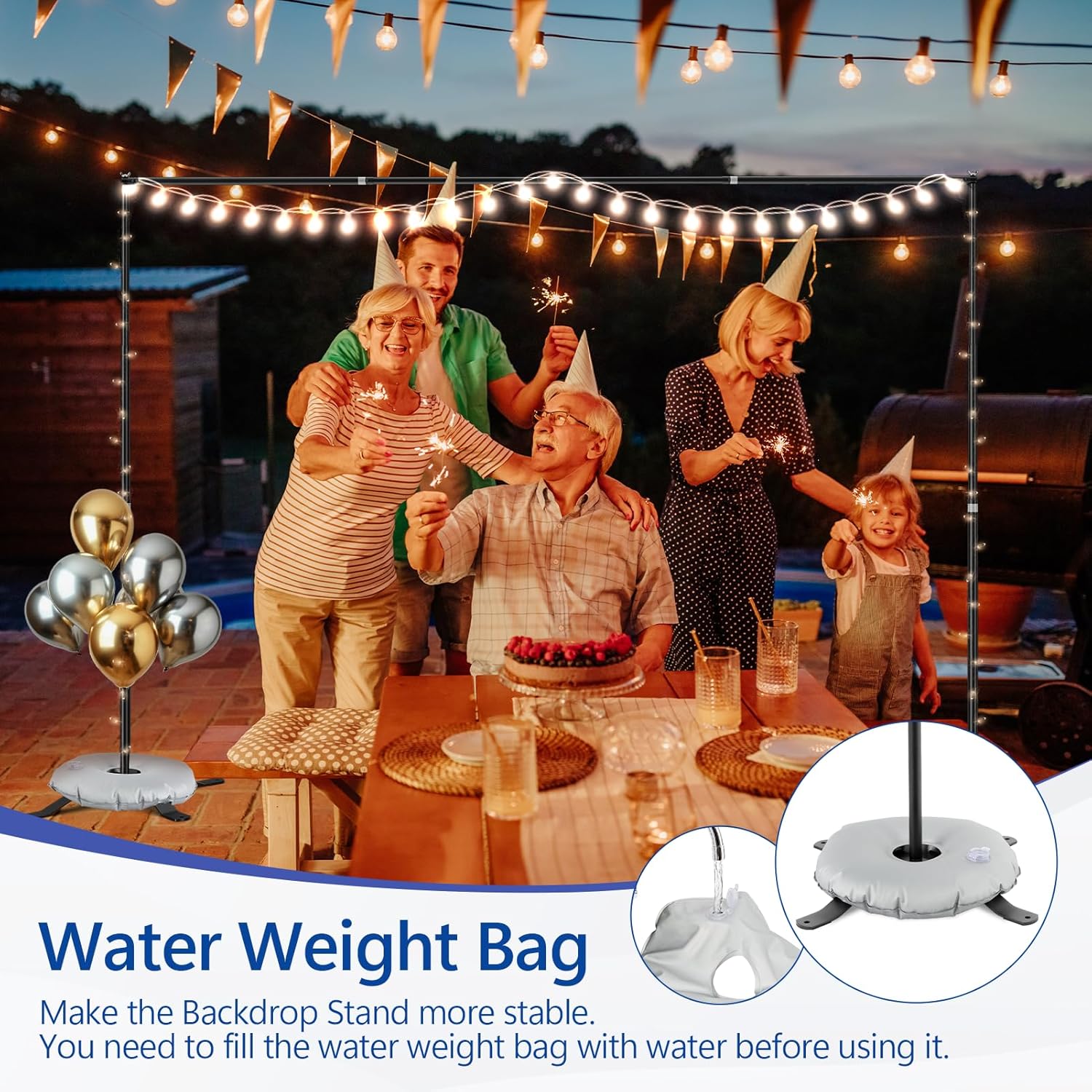 • 【Backdrop Stand for Parties】The packaging includes 4 x strip bases, 2 x retractable crossbar, 2x vertical pole, 4x spring clamps, 2x water weight bag, 8x tent nails and 1 x carry bag. The backdrop stand is made of high quality metal , robust and durable, ensuring lasting performance and stability.
