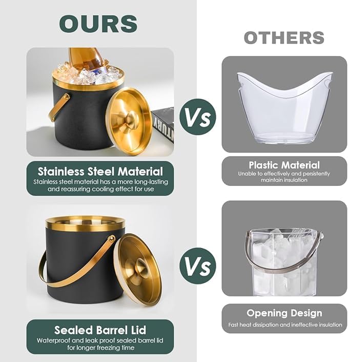 • 5. This insulated stainless steel ice bucket comes with a lid that features silicone sealing for waterproof and leak-proof performance. It can keep ice cubes and cold drinks chilled for an extended period, and it can also be used for food preservation, chilling beer and beverages, and making fruit teas. It's perfect for long outdoor activities or gatherings.