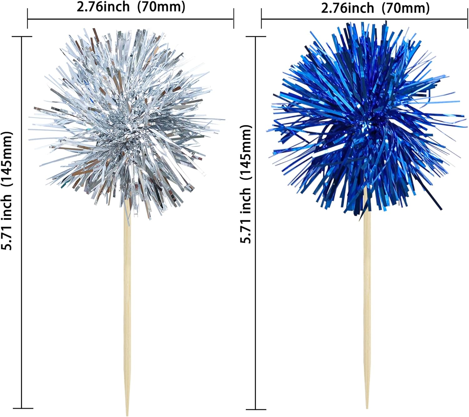 Gyufise 30Pcs Foil Firework Cupcake Toppers Sparkle Tinsel Cake Toppers Tinsel Drink Cake Decoration Cocktail Picks for Birthday Wedding Graduation Party Supplies Silver Dark Blue