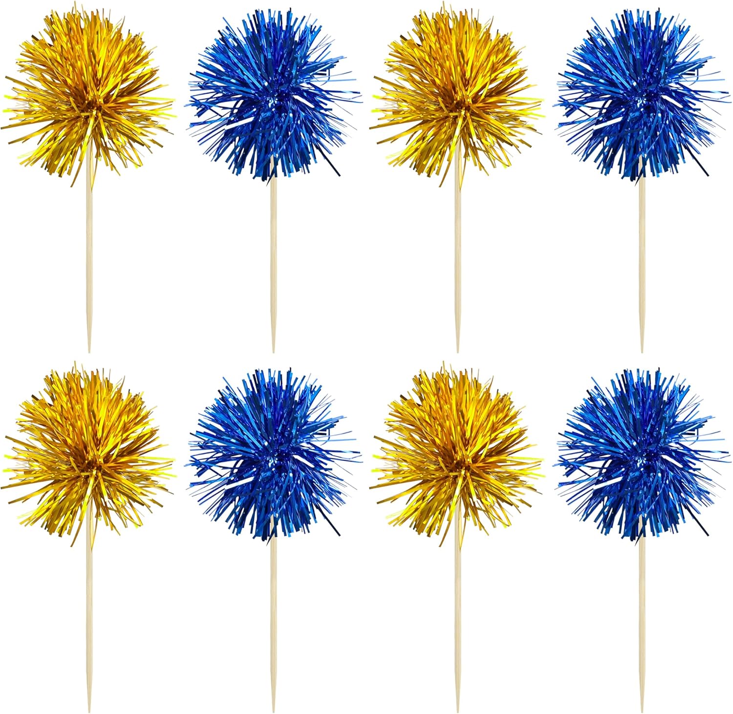 Gyufise 30Pcs Foil Firework Cupcake Toppers Sparkle Tinsel Cake Toppers Tinsel Drink Cake Decoration Cocktail Picks for Birthday Wedding Graduation Party Supplies Gold Dark Blue