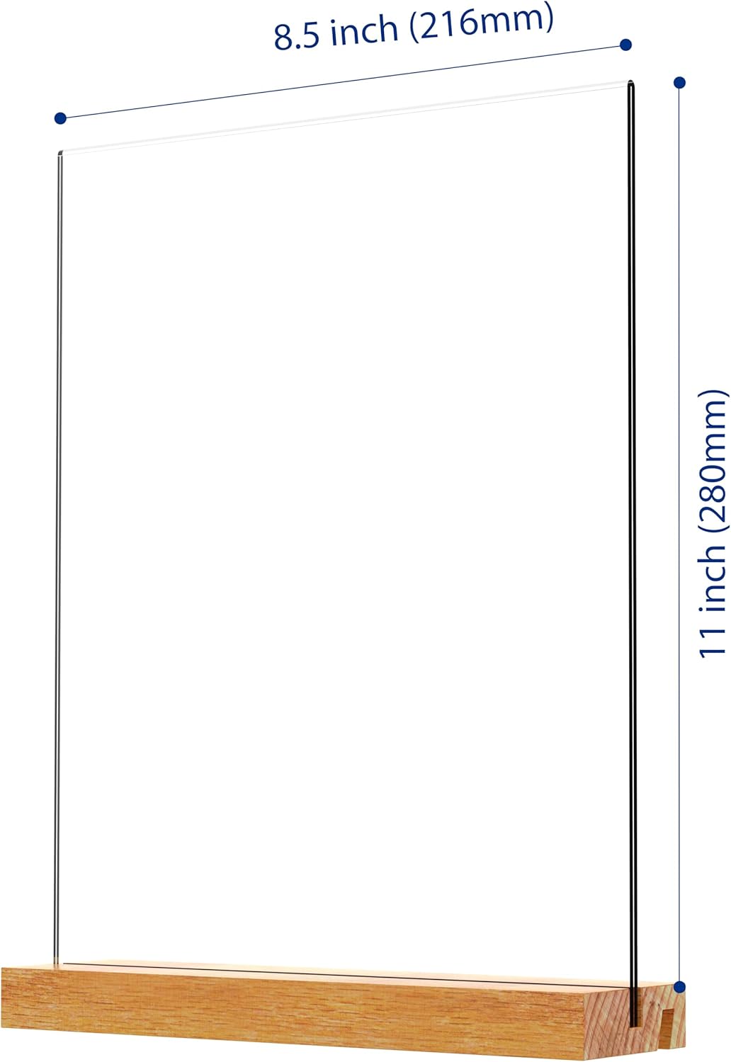 Acrylic Sign Holder with Wood Base 8.5x11 Inch Vertical and Slant Displays (2 Pack 8.5*11")