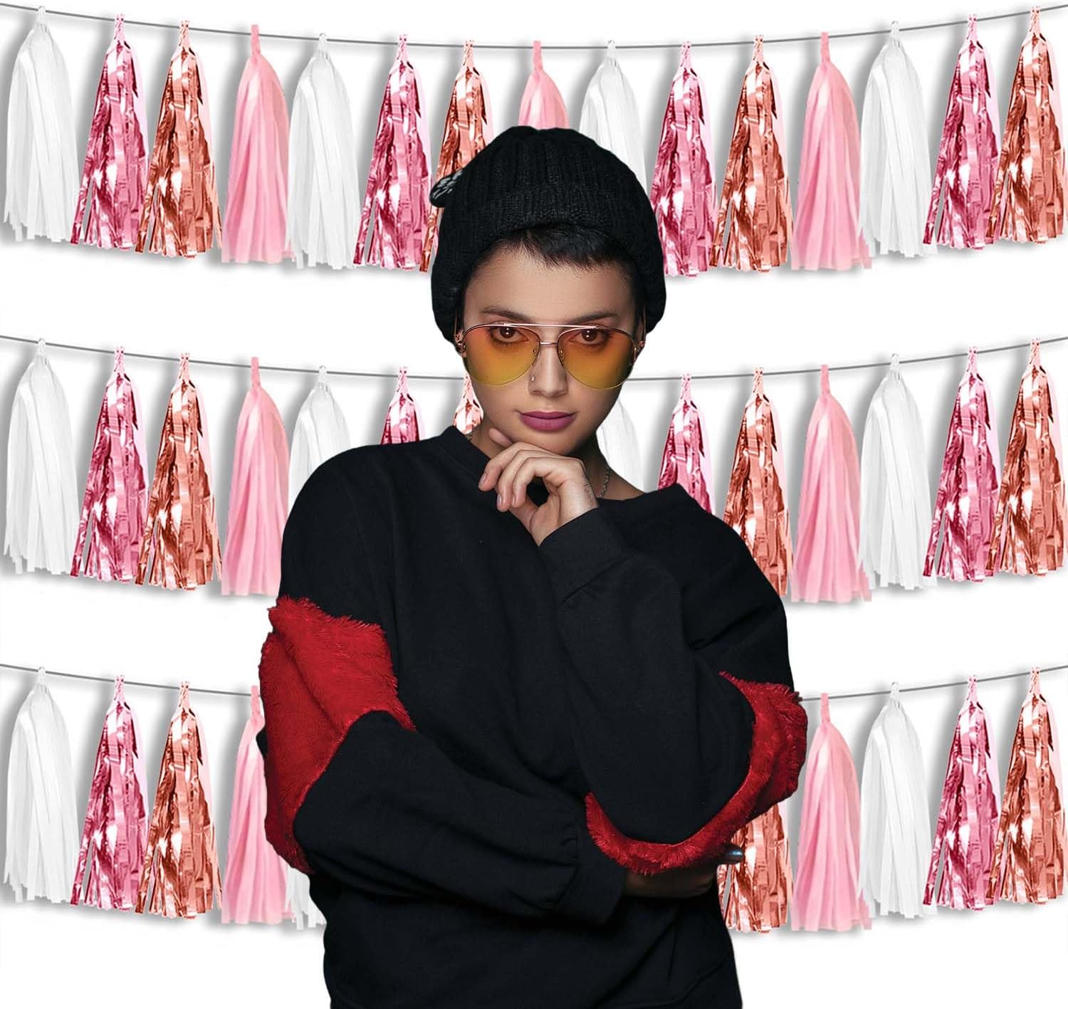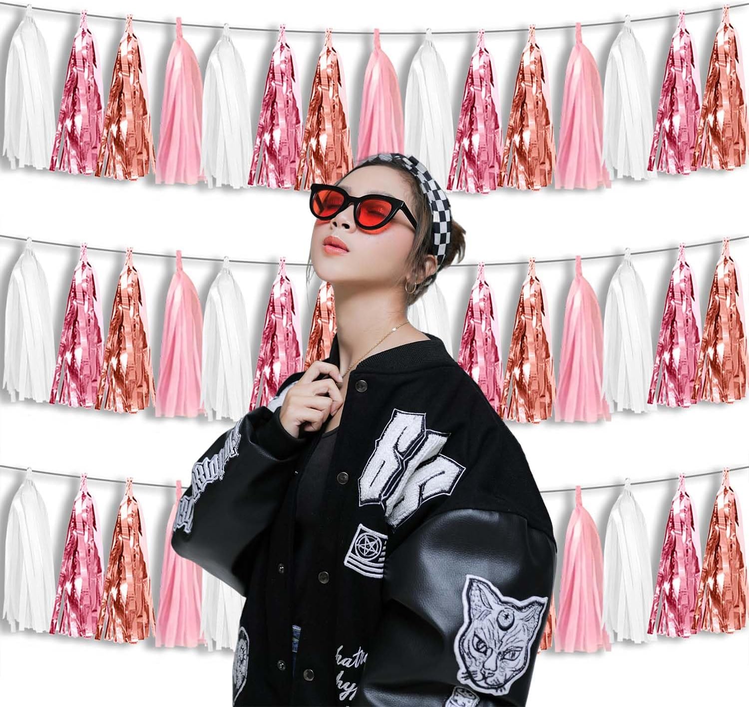 • 【Package Includes】The total length of the rose gold pink white birthday tassels banner is 30 feet, divided into 3 strips, each 10 feet long. Each banner contains 15 tassels, and each tassel measures 14 inches, for birthday decorations many occasions uitable for Patriotic display, Homecoming Float, Christmas Float, ecorative metal trailers, graduation floats etc