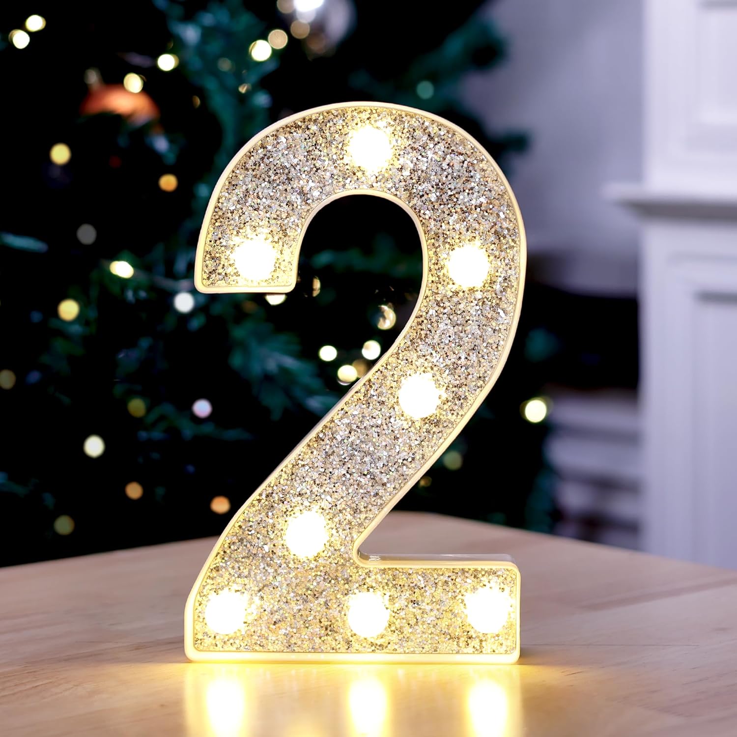 Marquee Light Up Letters, Glitter Silver LED Letter Lights Battery Powered Alphabet Letter Sign for Night Light Wedding Birthday Party Cafe Bar Decoration Girls Room Decor - Number 2