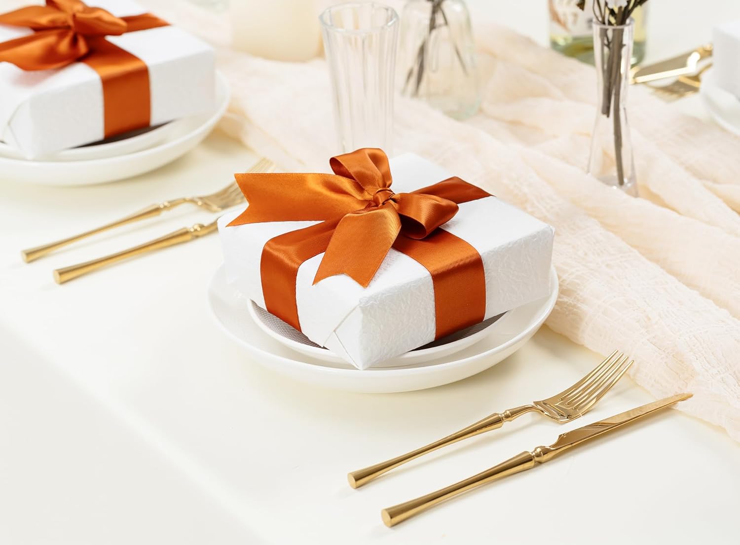 Copper Satin Ribbon 1-1/2 Inch x 50 Yards Double-Faced Polyester Ribbons for Bows Crafts Gift Wrapping Christmas Flower Bouquet Fall Wedding