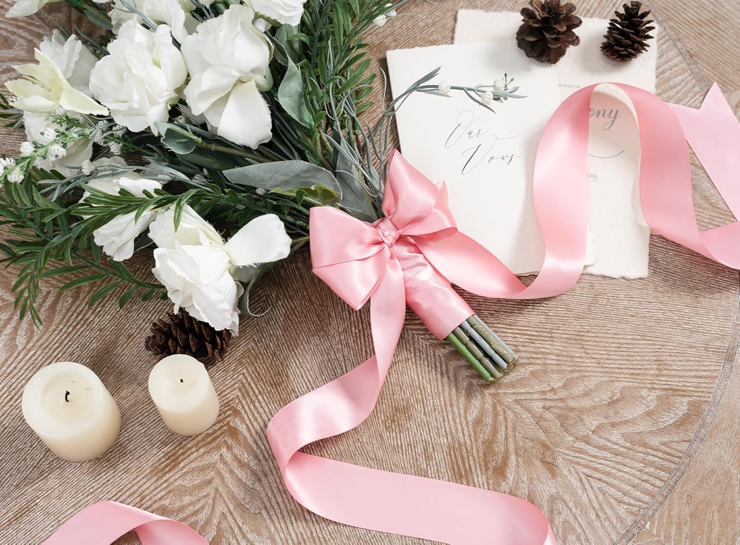 Pink Satin Ribbon 1-1/2 Inch x 50 Yards Double-Faced Valentines Ribbons for Flower Bouquet Gift Wrapping Party Decor Wedding Invitation DIY Craft