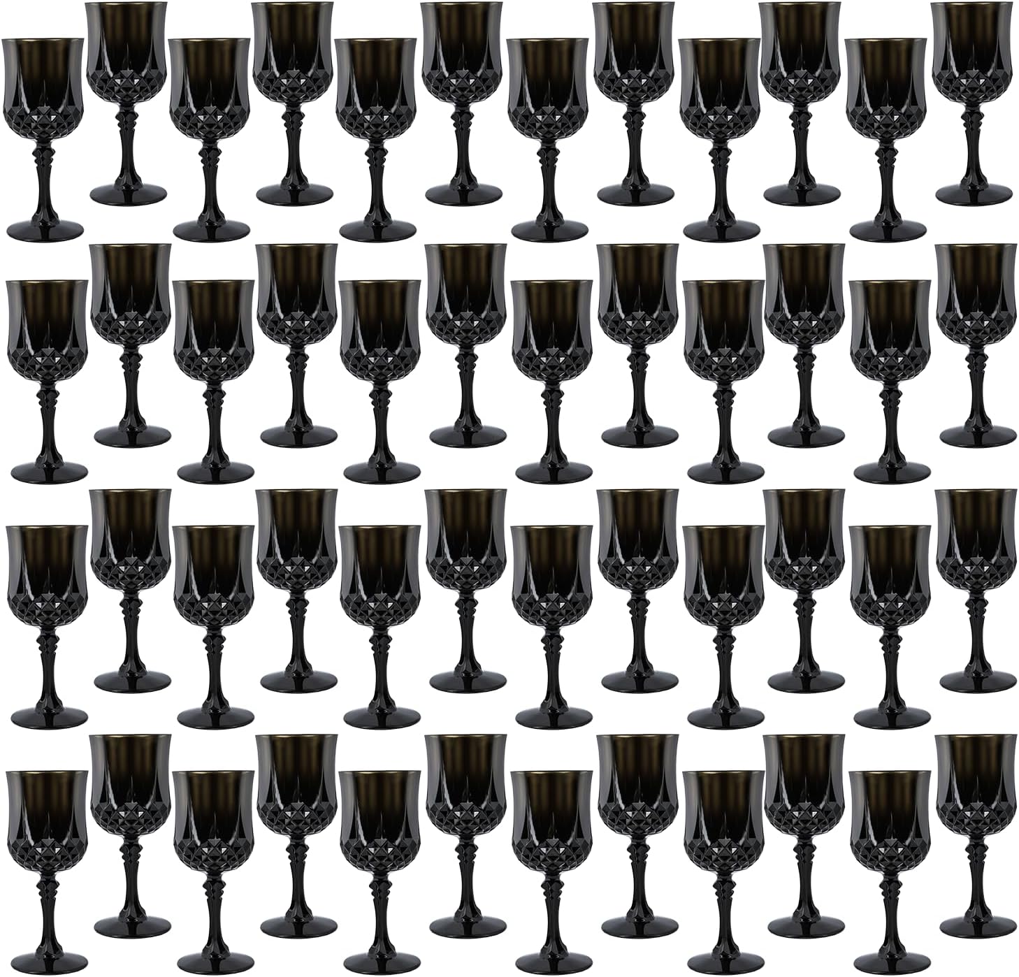 • 🍷🍷🍷【Product Description】 This set includes 48 retro-style black party plastic wine glasses, providing ample quantity to meet your daily use and replacement needs. The elegant and sophisticated design makes your wedding reception unique
