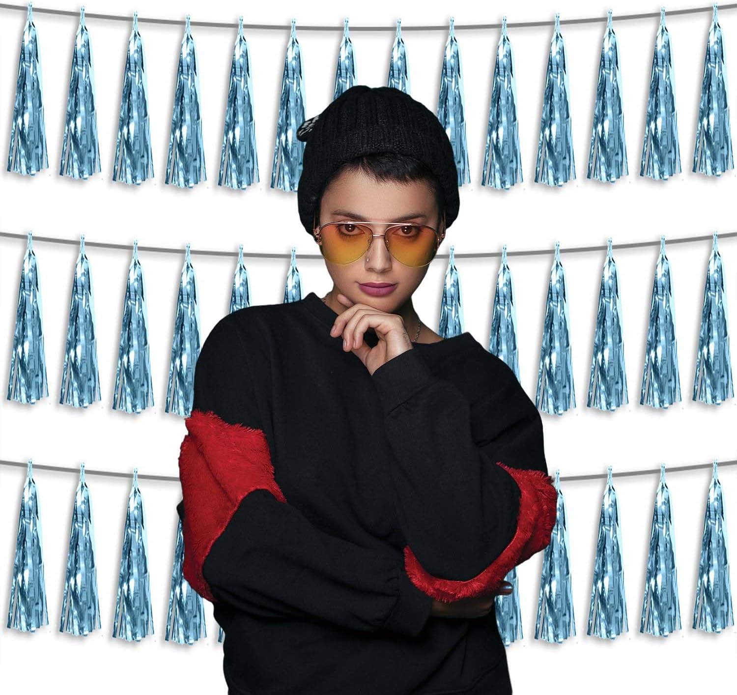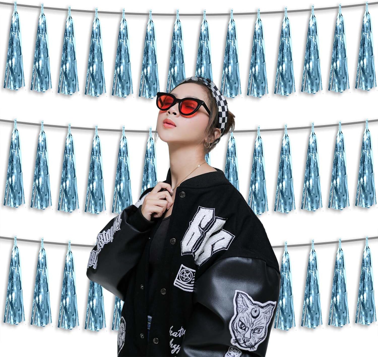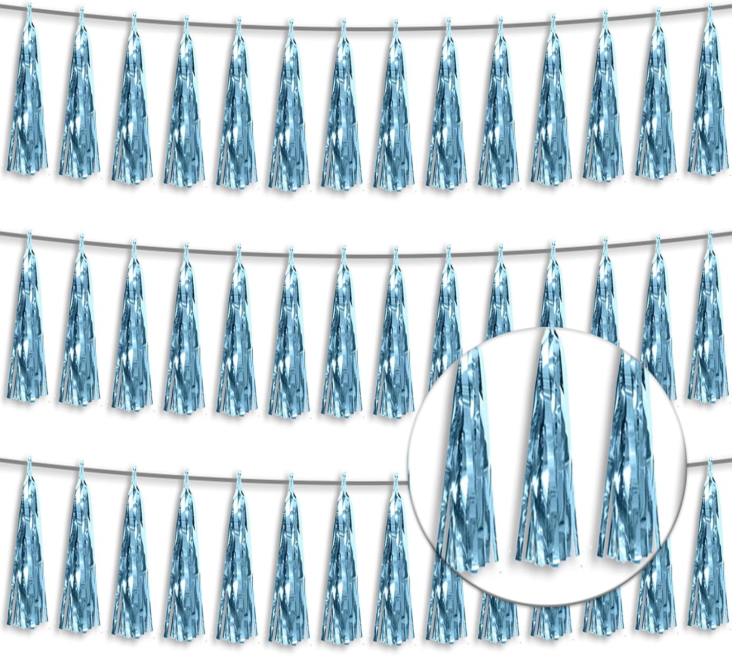3P Metallic Fringe Tassel Banner Garland Foil Tinsel Streamer Wall Hanging Curtain Backdrop Banner for Parade Floats, Graduation Decorations, Wedding Party Decoration(Light Blue)