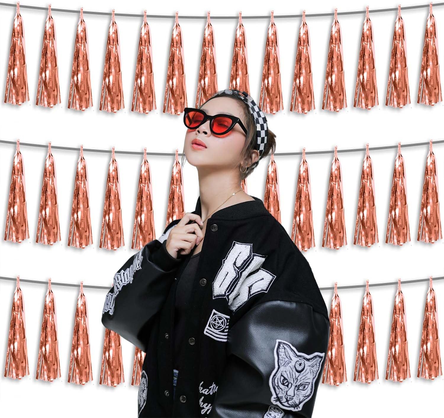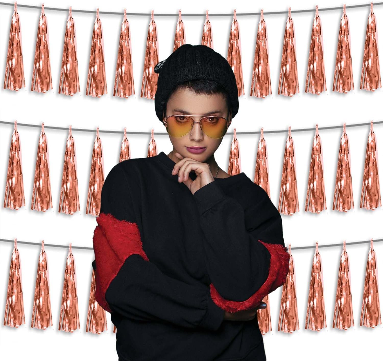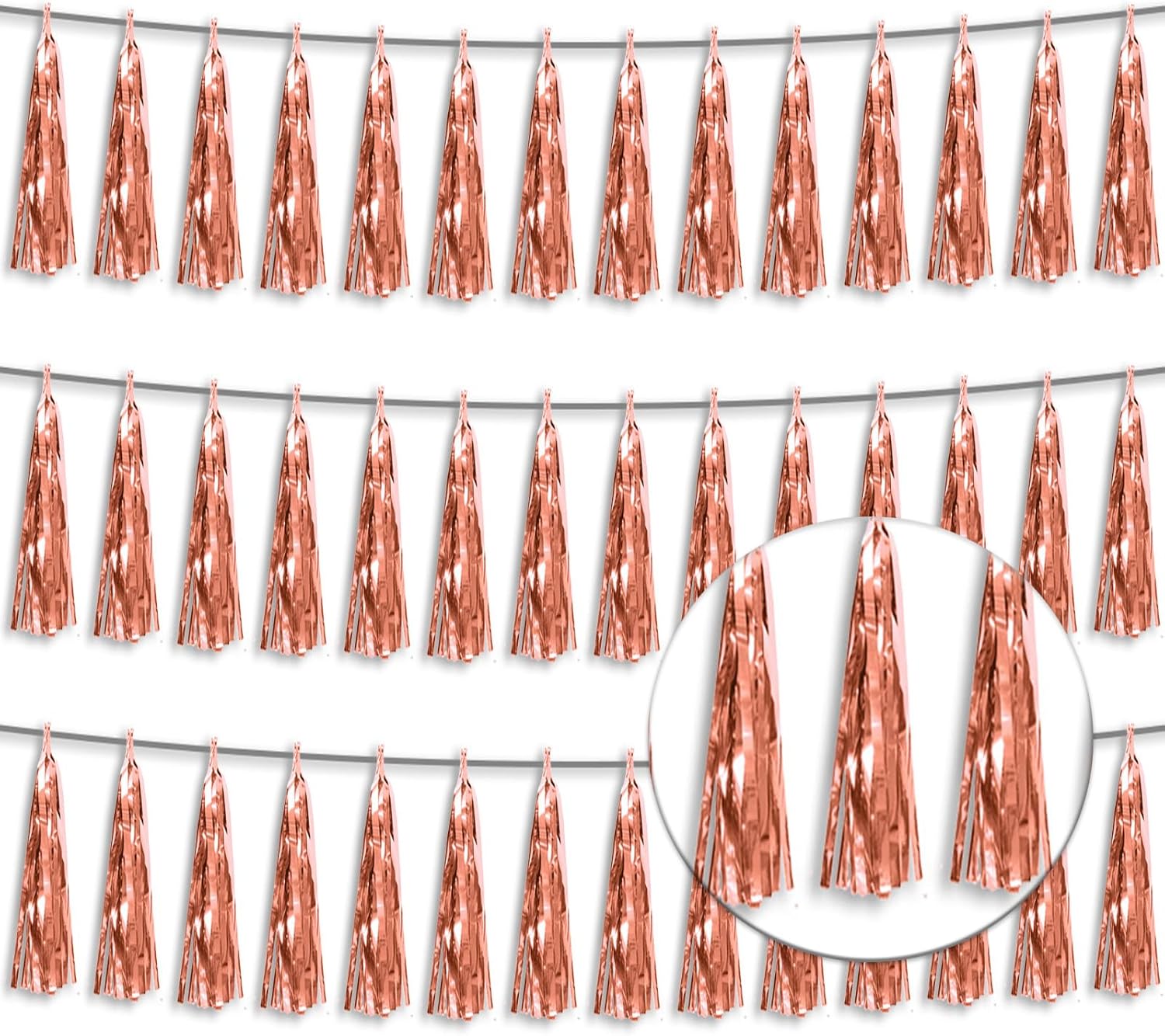 • 【Package Includes】The total length of the rose gold birthday tassels banner is 30 feet, divided into 3 strips, each 10 feet long. Each banner contains 15 tassels, and each tassel measures 14 inches, for birthday decorations many occasions uitable for Patriotic display, Homecoming Float, Christmas Float, ecorative metal trailers, graduation floats etc