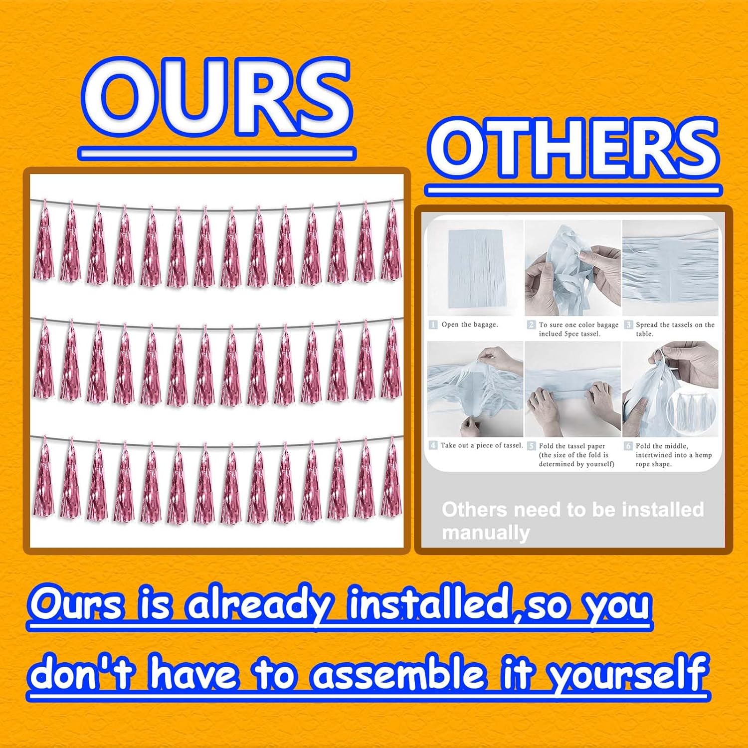 • 【Premium Reusable Tassel Material】: Our glitter fringe garland is made of high-quality PET material, with the virtue of nice craftsmanship and light weight which is safe and recyclable. And the smooth touch makes tassels easy to tidy up. They come with white ribbon for hanging, and garland tassels hang perpendicular to the string, and are adjustable to provide you with the option of spreading the tassels out or piecing them closer together.