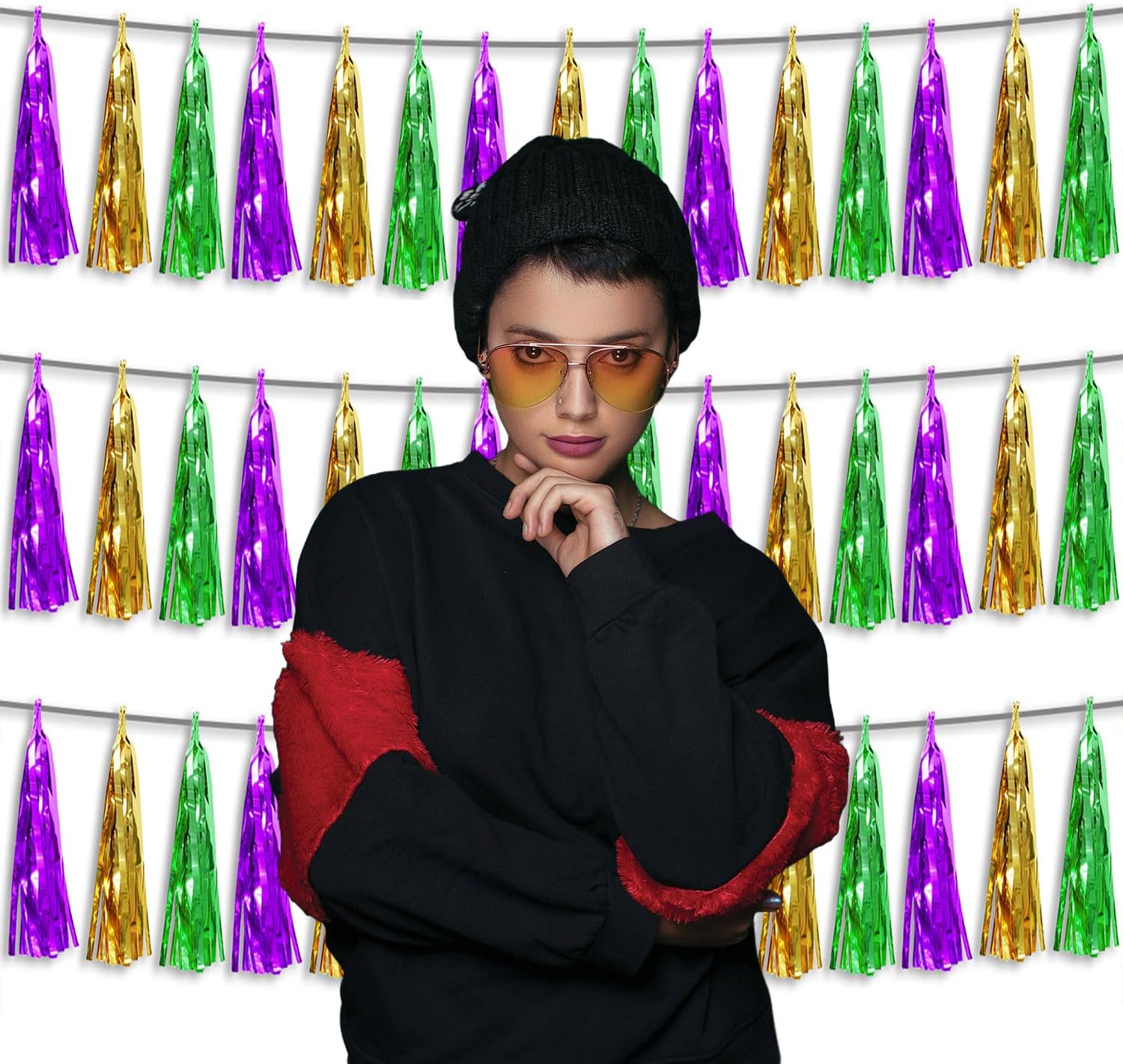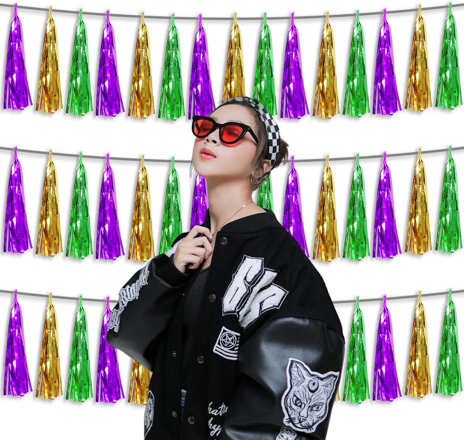 • 【Package Includes】The total length of the gold green purple gold birthday tassels banner is 30 feet, divided into 3 strips, each 10 feet long. Each banner contains 15 tassels, and each tassel measures 14 inches, for birthday decorations many occasions uitable for Patriotic display, Homecoming Float, Christmas Float, ecorative metal trailers, graduation floats etc