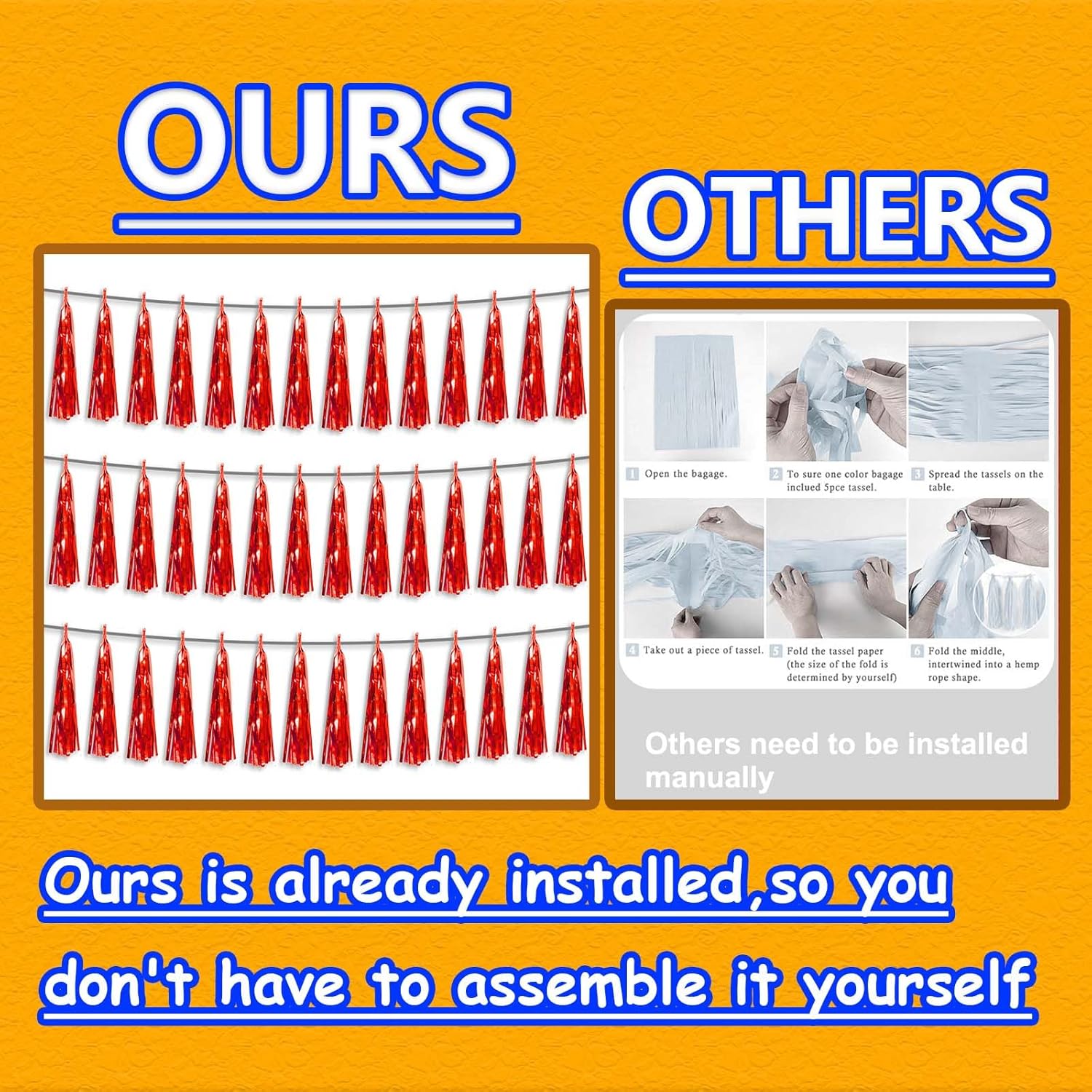• 【Premium Reusable Tassel Material】: Our glitter fringe garland is made of high-quality PET material, with the virtue of nice craftsmanship and light weight which is safe and recyclable. And the smooth touch makes tassels easy to tidy up. They come with white ribbon for hanging, and garland tassels hang perpendicular to the string, and are adjustable to provide you with the option of spreading the tassels out or piecing them closer together.