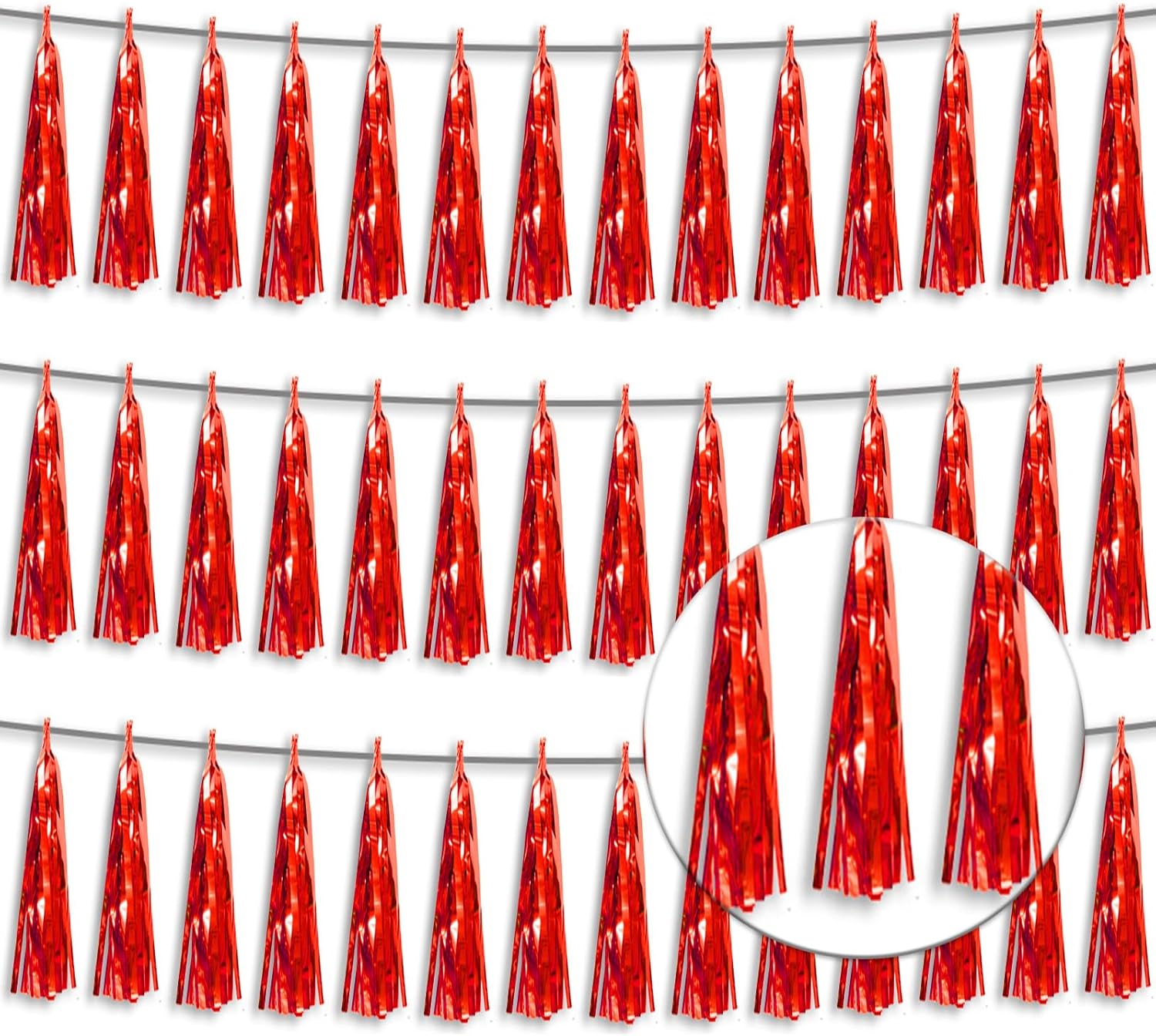 3P Metallic Fringe Tassel Banner Garland Foil Tinsel Streamer Wall Hanging Curtain Backdrop Banner for Parade Floats,Graduation Decorations, Wedding Party Decoration(Red)