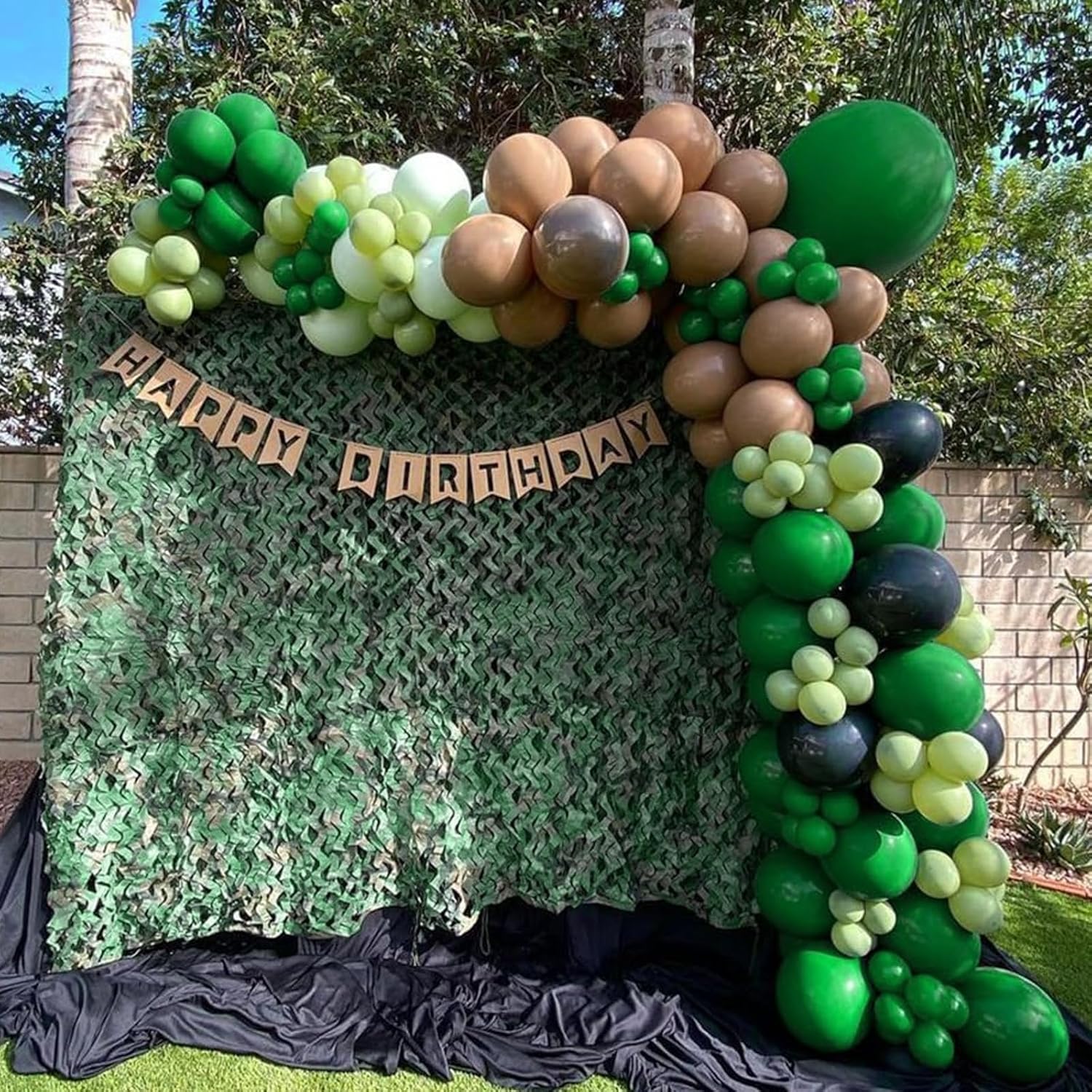 • Dark Green Brown Balloons: Package comes with 12 inch dark green balloons (8 pcs), avocado green balloons(10 pcs),black balloons(9 pcs), brown balloons (8 pcs),white balloon ribbon (1 roll). Just enjoy your party with these dark green brown balloons.