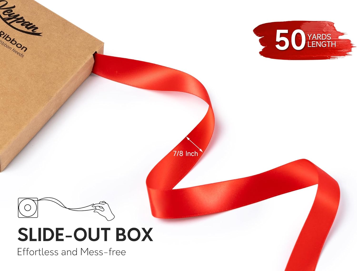 Red Satin Ribbon 7/8 Inch x 50 Yards Double-Faced Ribbons for Christmas Gift Wrapping Flower Bouquet Wedding Paper Bows Invitations Crafts