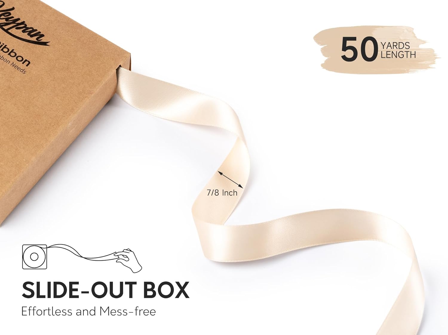Light Champagne Satin Ribbon 7/8 Inch x 50 Yards Double-Faced Polyester Ribbons for Flower Bouquet Gift Wrapping Party Decor Wedding Invitation DIY Craft
