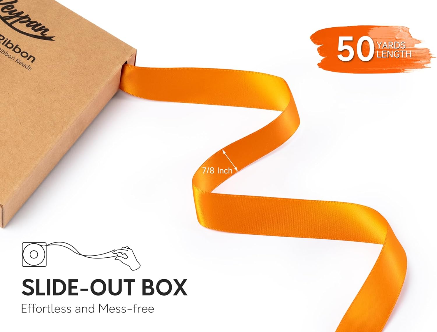 Orange Satin Ribbon 7/8 Inch x 50 Yards Double-Faced for Bows Crafts Gift Wrapping Christmas Flower Bouquet Fall Wedding