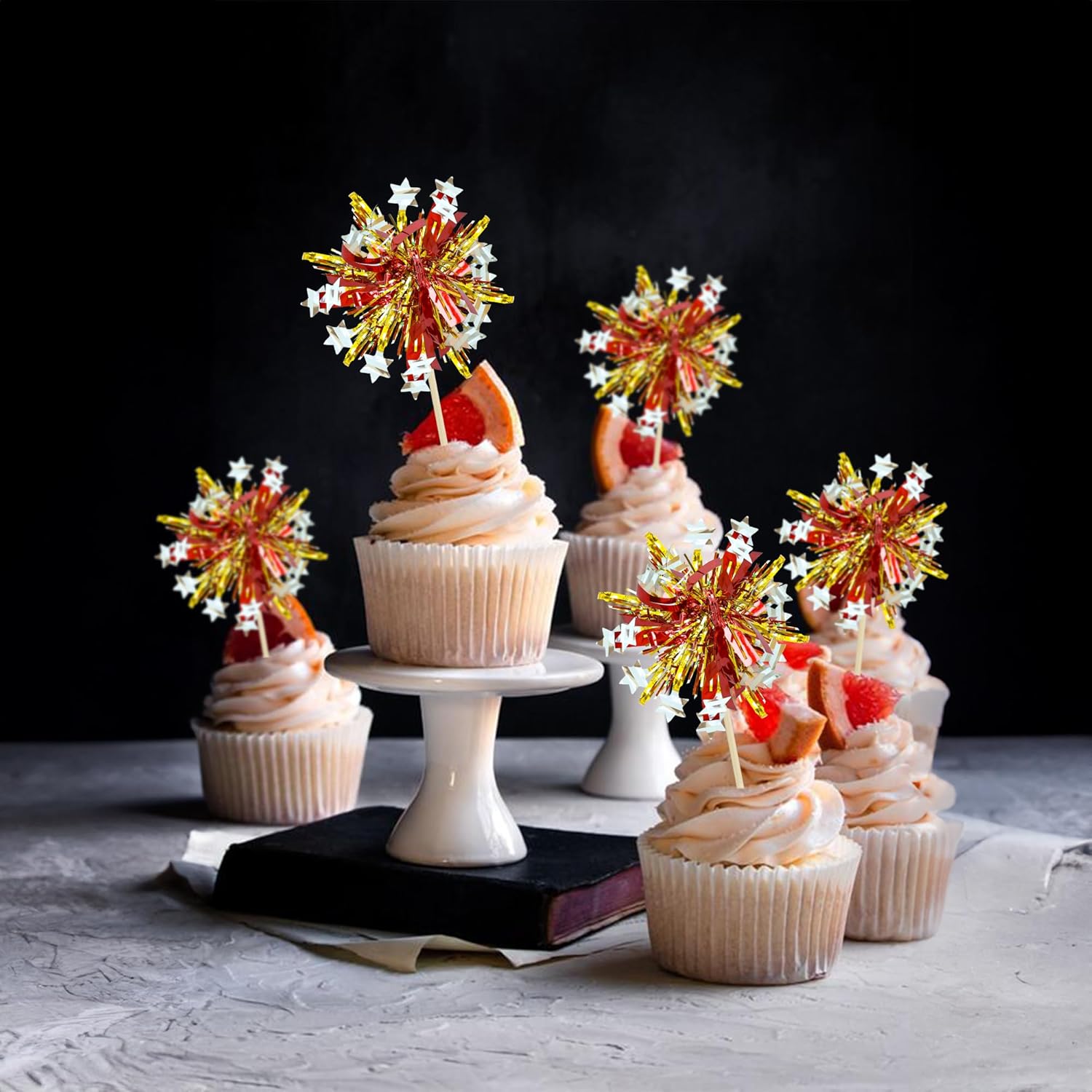 • 【NO Required】: 30Pcs Foil Firework cupcake toppers can put in the cake directly! These 30Pcs Foil Firework Cupcake toppers save your time and super easy to use. You can easily dress up your birthday theme cakes, yes! but don't stop there, put them into desserts, cookies, fruit pieces, appetizers, muffins and so much more!