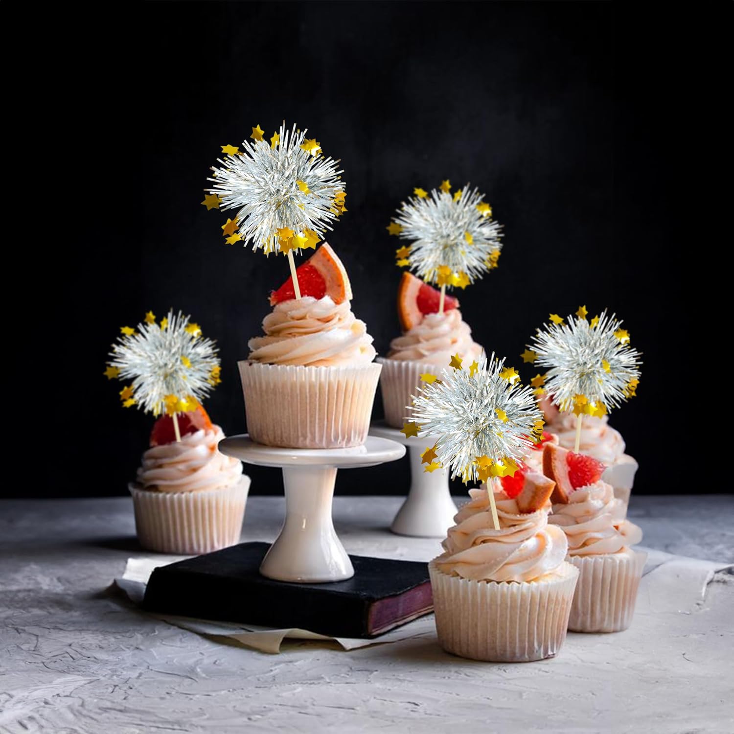 • 【NO Required】: 30Pcs Foil Firework cupcake toppers can put in the cake directly! These 30Pcs Foil Firework Cupcake toppers save your time and super easy to use. You can easily dress up your birthday theme cakes, yes! but don't stop there, put them into desserts, cookies, fruit pieces, appetizers, muffins and so much more!