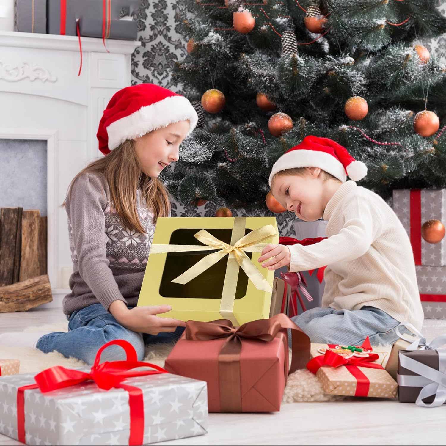 • 💝WIDE APPLICATION: The gift boxes with window can hold clothes, jewelry, photos, perfumes, chocolates, toys and more. It is the ideal gift box for the perfect presentation of gifts. The beautifully wrapped box ensures that your gift is perfect. Make sure to make your gift stand out on Christmas gift, birthday party gift,Mother's Day, Thanksgiving Day gift, wedding gift or any celebration.