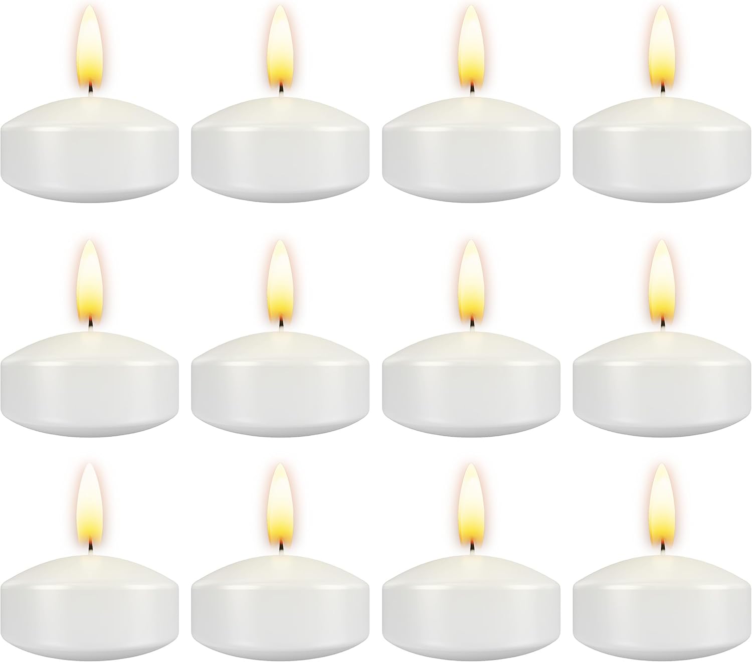 Aignis 12pcs Floating Discs Wax Candles, Burning Time 4+ Hours, 2 Inch Unscented Dripless, White Set for Wedding/Birthday/Celebration/Party/Holiday/Home Décor
