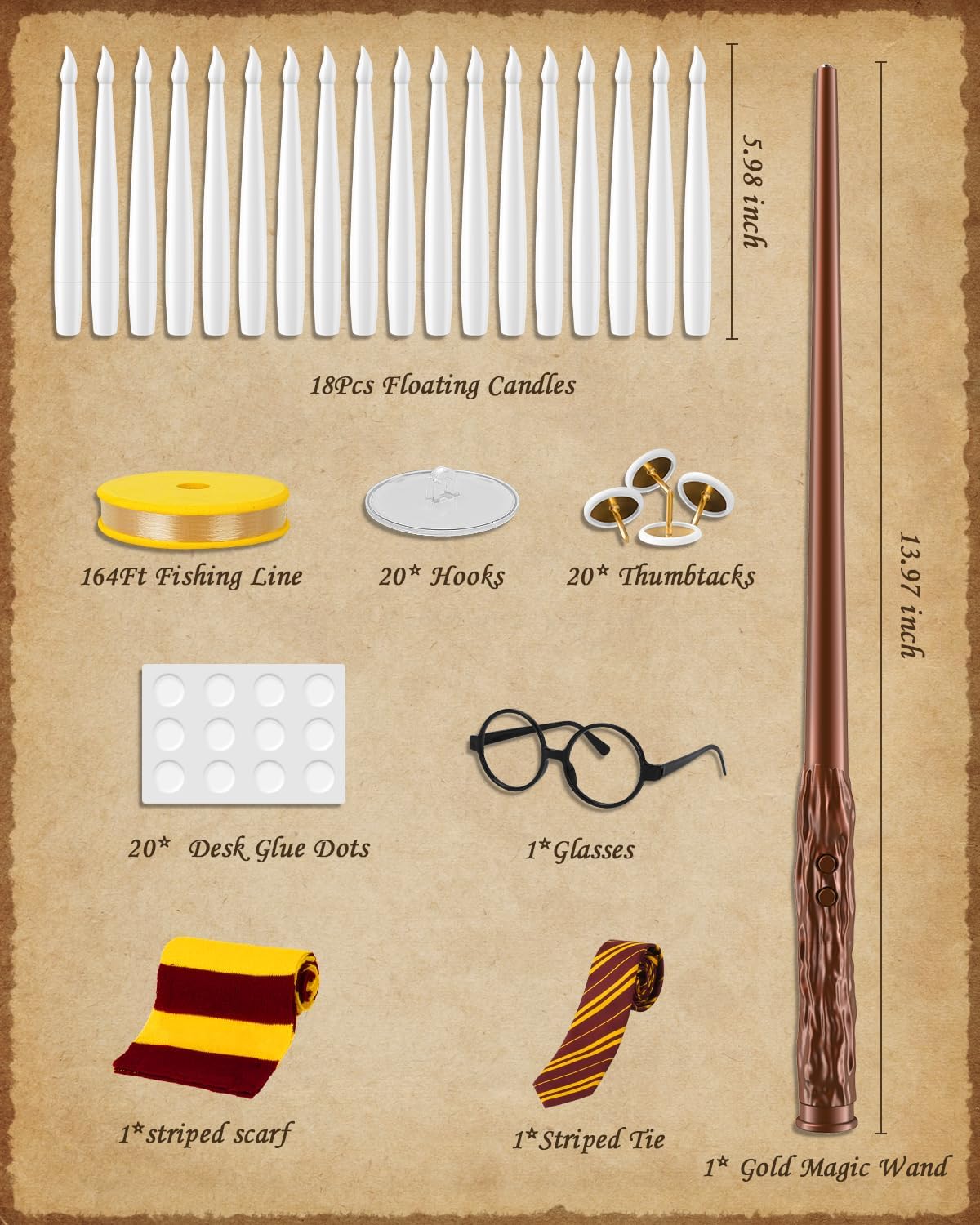 Floating Candles with Wand - 18 Pack Halloween Decorations Magic Flameless Candles Flickering Light Hanging Candle Remote with Glasses, Tie, Scarf, Battery Operated Candles for Christmas Party Decor