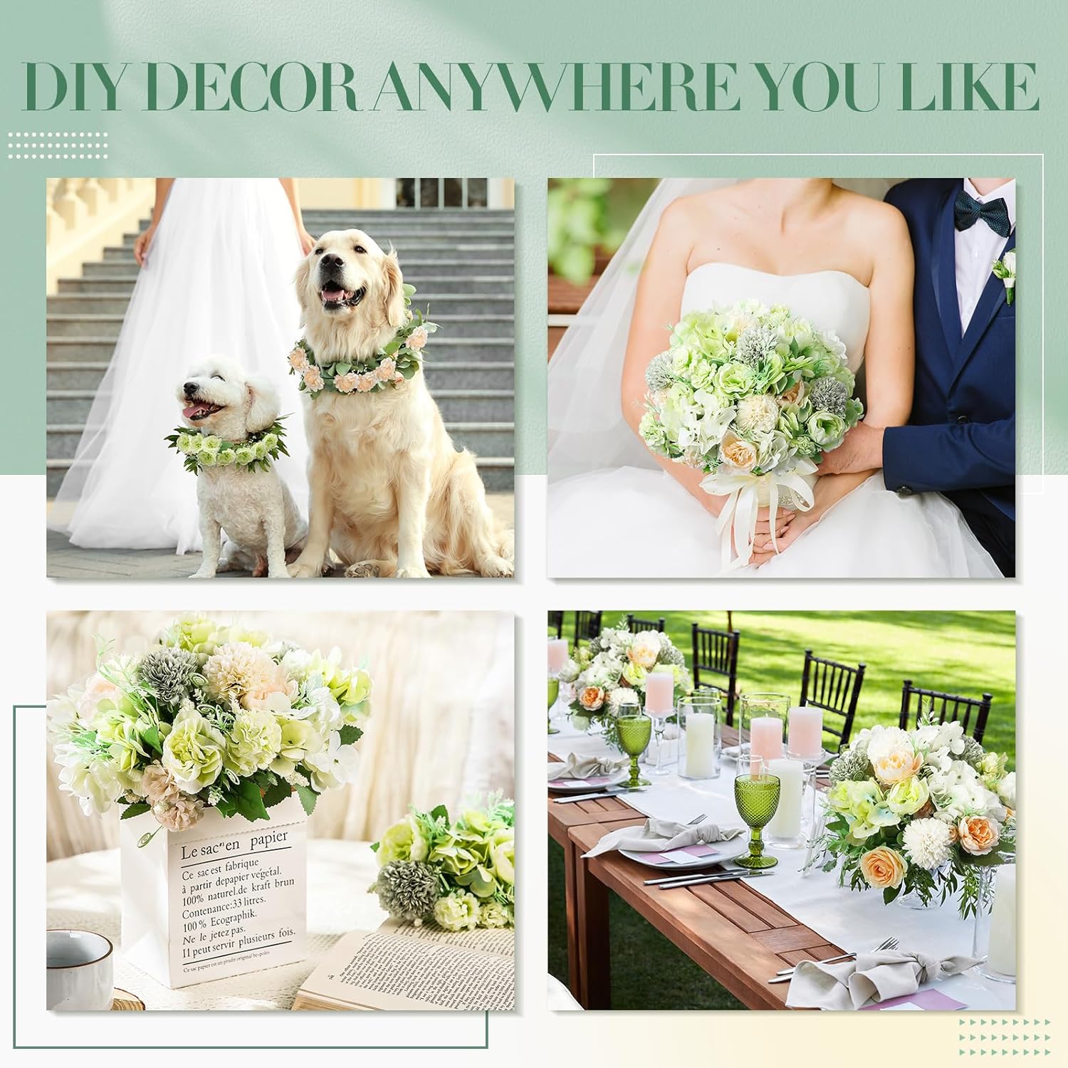 Tigeen Artificial Flowers Artificial Peonies Silk Flowers Faux Peony Fake Peony Silk Hydrangea Bouquet for Wedding Table Centerpiece Floral Vase Decor (White,Green,12 Bundles)