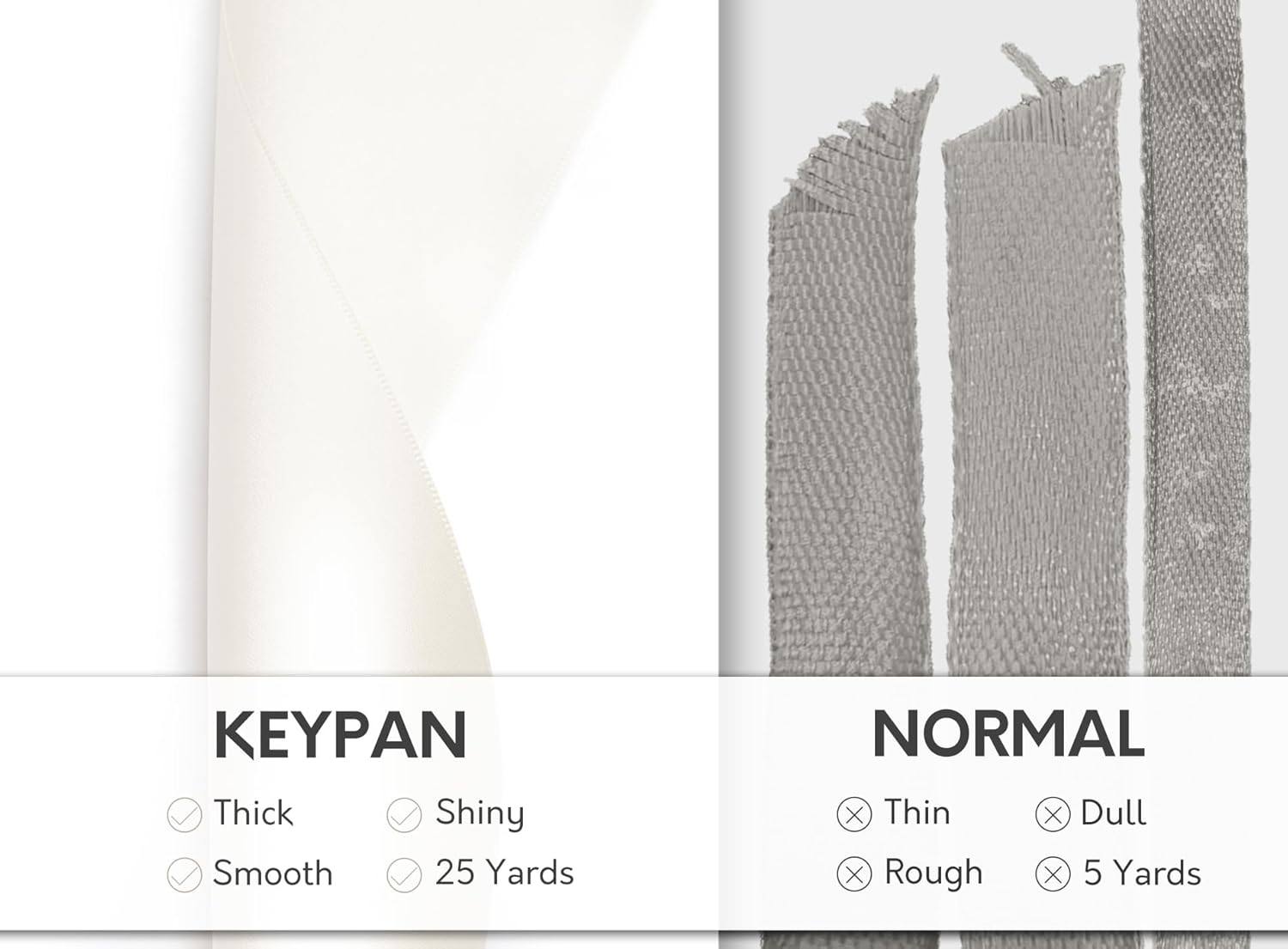 • ELEGANT LUSTROUS SHINE: This satin ribbon has a double-faced backing of high-quality, smooth and shiny polyester satin with a luxurious feel. The ribbon edges are neatly sewn. It is great for adding an elegant touch to your home decor and Christmas tree