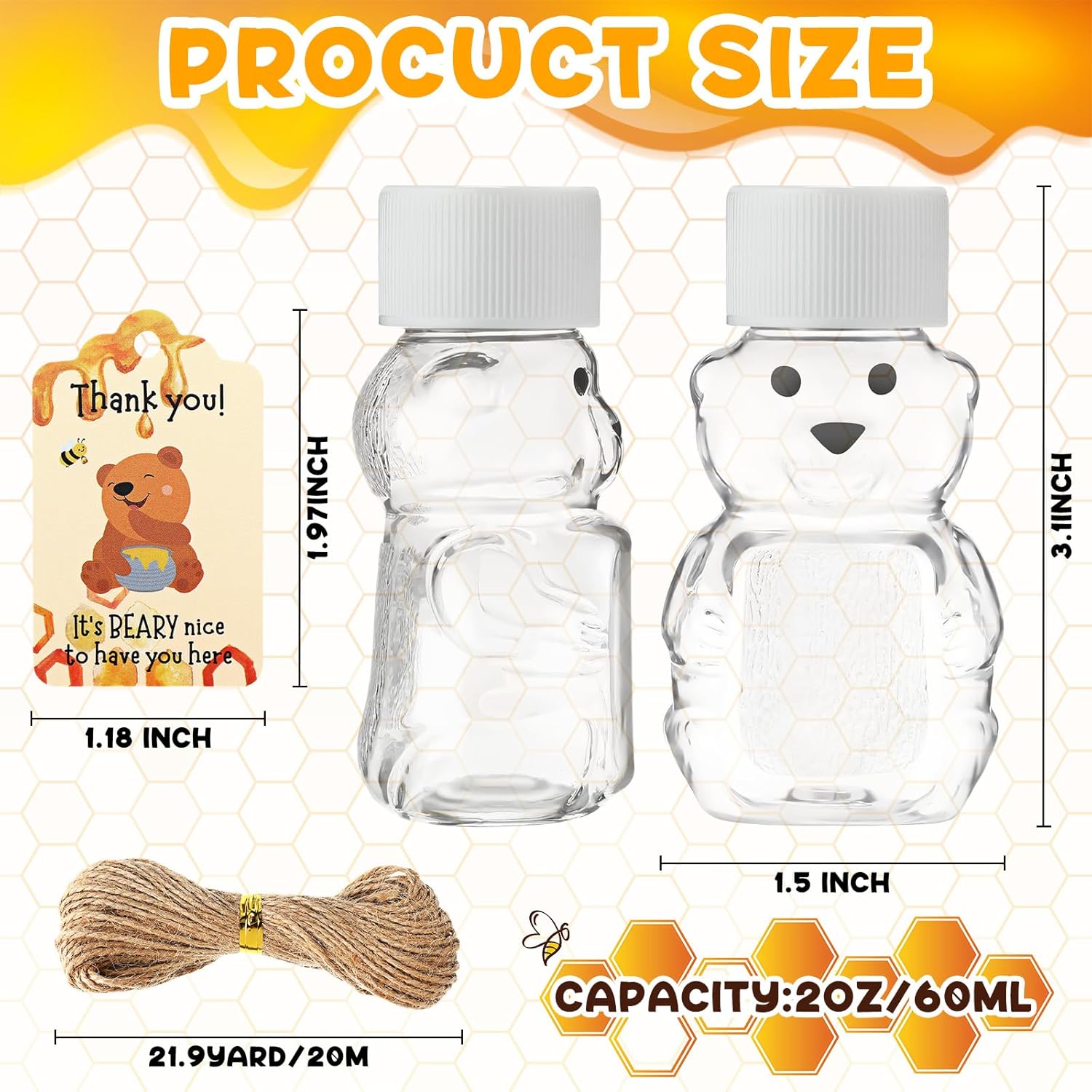 • Lovely Plastic Honey Bear Bottle: the package includes 96 plastic honey jars with white lid, about 2 oz/ 60 ml, 96 tags, and 2 rolls of rope (about 22 yd/ 20 m per roll); The proper size makes them adorable and attractive at your party, and you can share them with your family