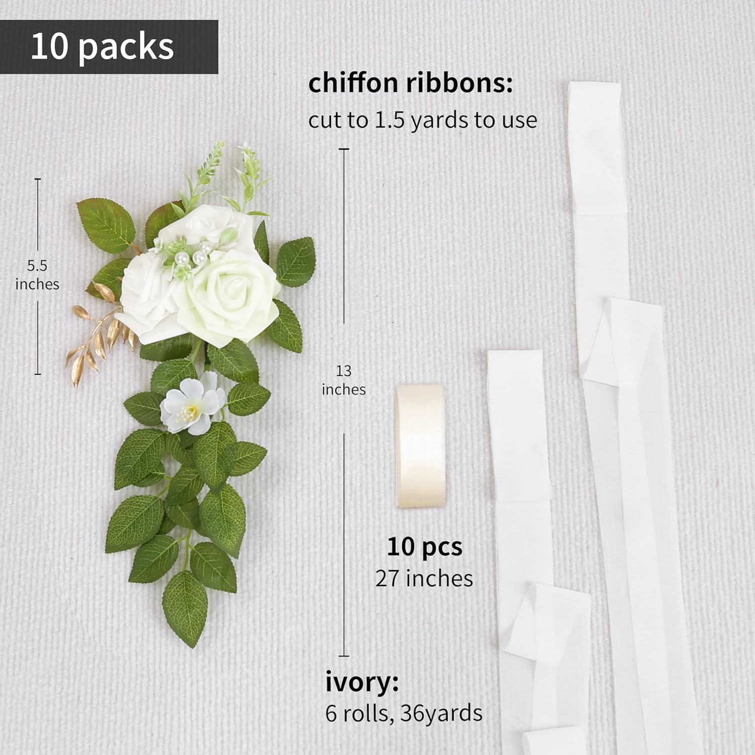 • Budget-Friendly and Great Value: Each set includes 10 pre-made aisle decoration flowers, along with 6 rolls of soft, handmade chiffon ribbons (6 yards per roll, easily cut to your desired length). This affordable option provides excellent value, allowing you to create a breathtaking wedding aisle without exceeding your budget. These versatile chair decorations can be used to adorn both the wedding aisle and wedding chairs, adding elegance to every aspect of the ceremony.