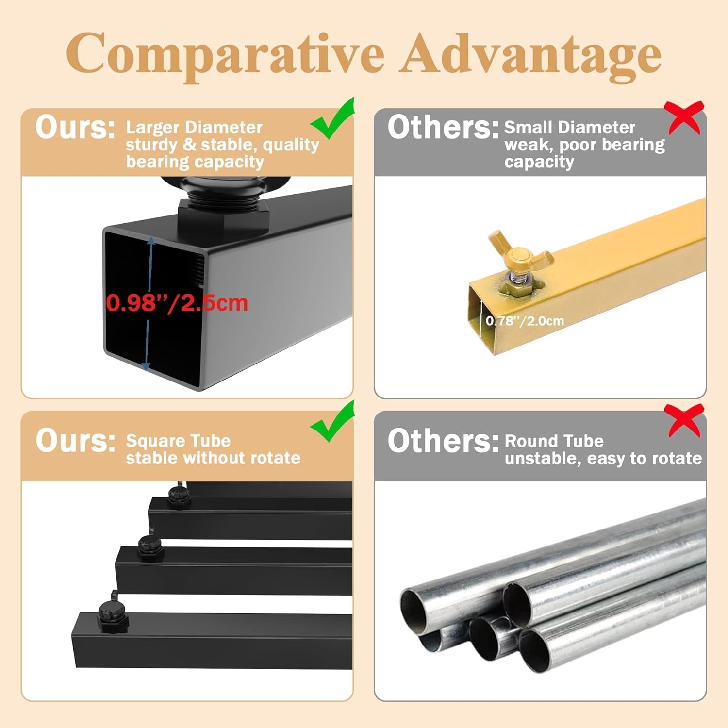 • 【Heavy Duty Backdrop Stand】8x8 ft/2.4x2.4 M square backdrop stand heavy duty with base is made of 1.0mm thick high toughness and anti-rust square steel pipe, more stable than circular tube without easily twist. Sturdy base legs provides a firm and balanced support of metal photo backdrop stand, safe and secure.