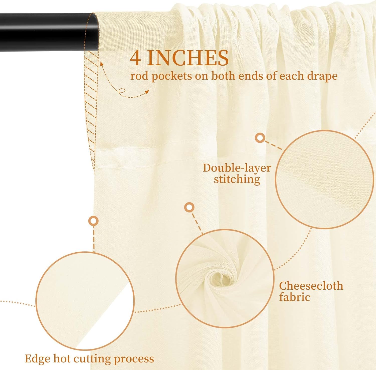 • 👑【Easy Hanging Draping Fabric】There is a 4 inches pocket for rod or pole entry at the top and bottom of each panel creating beautiful draping. Easy and quick to install, it can be hung vertically or horizontally. Different hanging methods will bring you various visual effects. You can also hang some balloon garland, window curtain lights and artificial flowers with stem to add an elegant and romantic atmosphere
