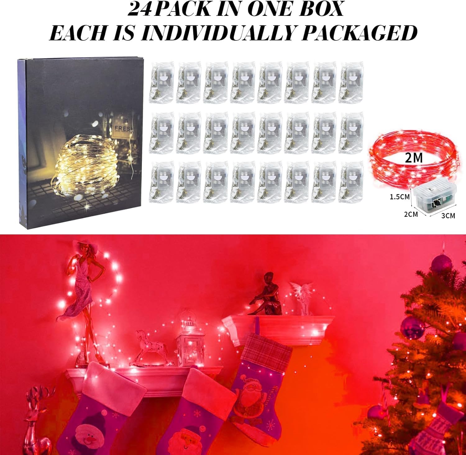 ZGWJ 24 Pack Fairy Lights Battery Operated, 7ft 20 Mini LED Fairy String Lights Silver Wire 3 Modes for DIY, Parties, Wedding, Bedroom, Halloween Christmas Decoration Red