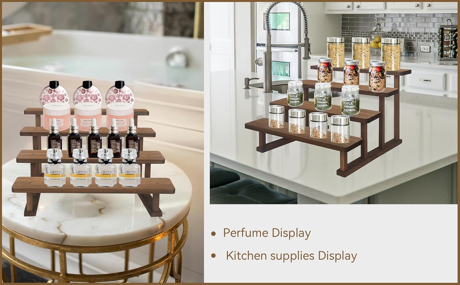 4 Tier Wooden Display Riser Stand, Cupcake Display Shelf Tabletop Spice Rack for Party, Kitchen, Perfume, Fragrance, Vendors event