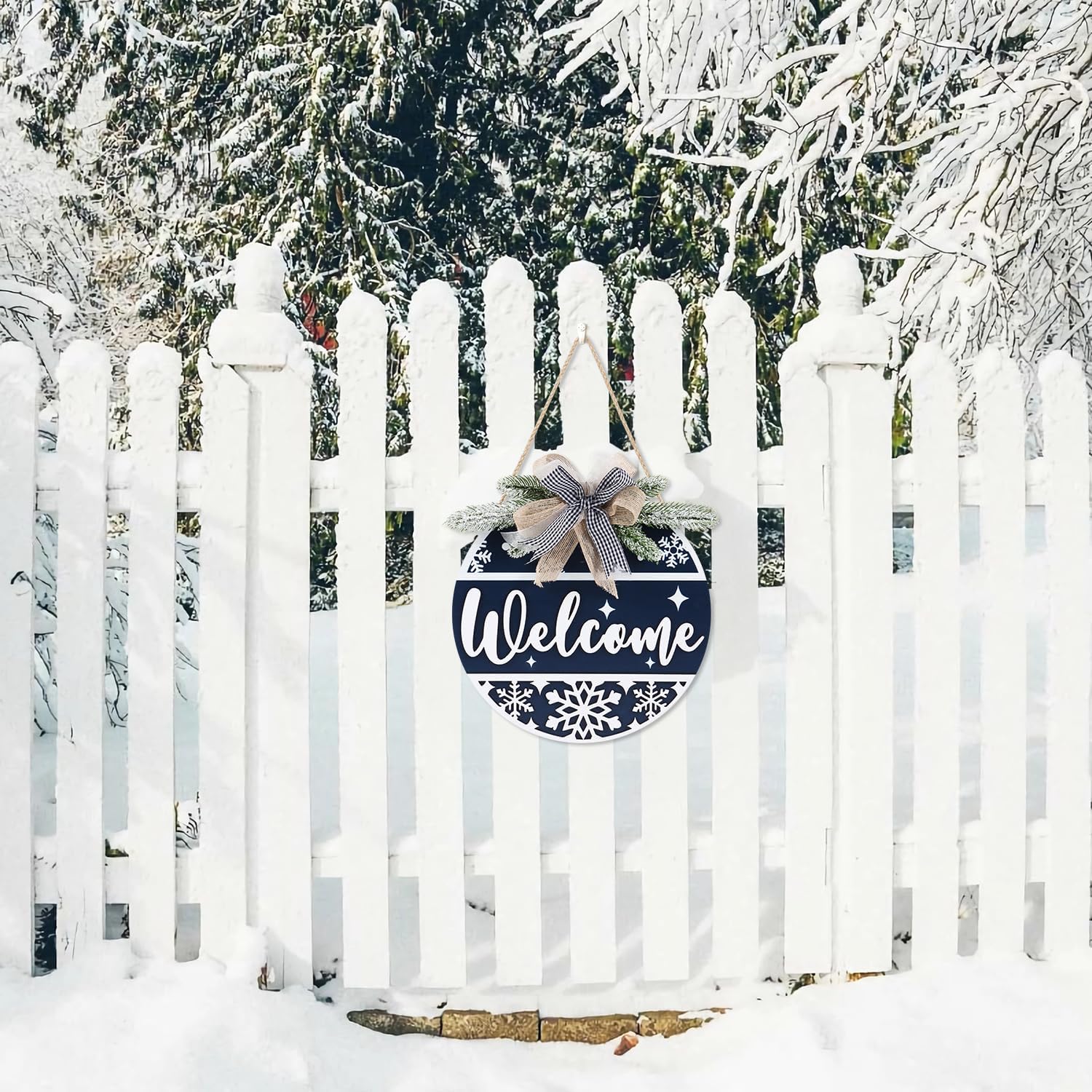 • Made of Synthetic Wood Material——Measuring in at 11.4”x11.4”, this winter welcome wall hanging is made of wood material which is thicker and stronger. Safe and durable to use, sun protection and anti-fading. It can be used for a long time.