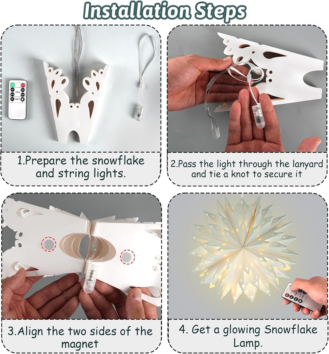 • Exquisite Craftsmanship: Crafted from premium thick paper material, these paper snowflake lanterns with lights are not easy to break or tear, durable and long-lasting. The high-quality craftsmanship ensures they remain sturdy throughout your festivities, while the detailed design adds sophistication and charm to any space
