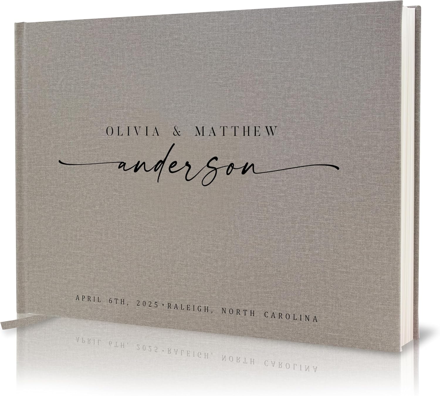 • Select from 12 colors to customize the cover of your guestbook for wedding, ensuring it aligns perfectly with your wedding book theme, photo guest book sign or personal taste. From timeless linen textures to bold, contemporary colors, our guestbook is crafted to suit any event’s decor style.
