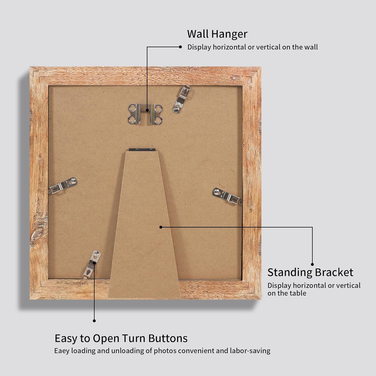 • Multi Frames Collage Set: Includes 4 frames in the same size. Perfectly fits 6x6 inch pictures with mat or 8x8 inch without mat. The frame opening display size is 0.5 inches smaller than the photo size for secure mounting.