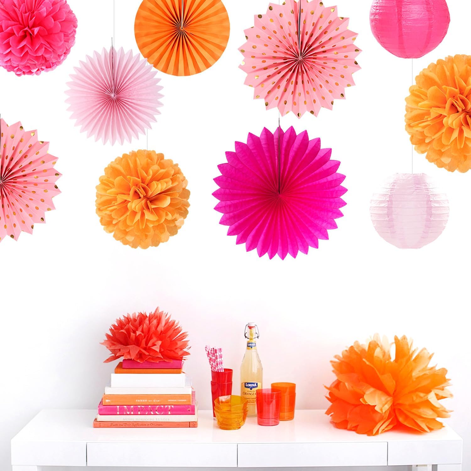 • Package Including:The hot pink burnt orange party decorations 1pcs paper garland dots,1pcs Triangle Flags in three color,15pcs tassel garland in three color,2pcs 8” paper lantern,6pcs streamers in three color,2pcs 10” paper lantern fan,2pcs 10” paper flower in two color,1pcs 12” paper flower,2pcs 12”paper lantern fan,1pcs 16”paper lantern fan.