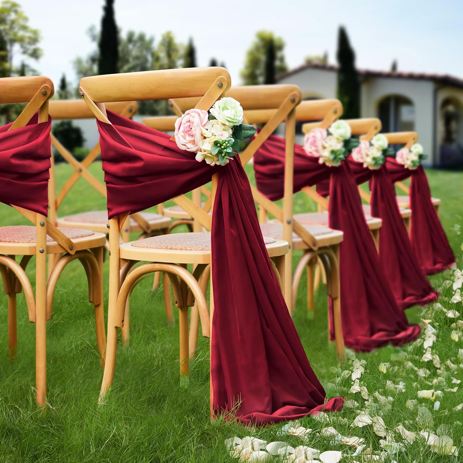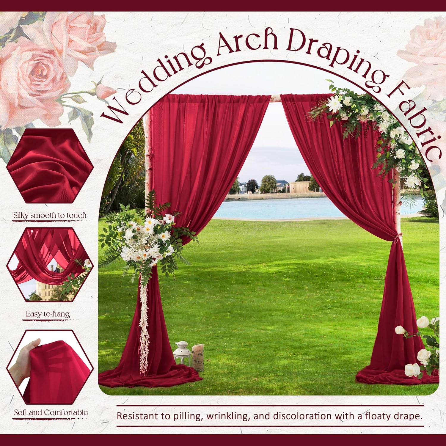 VACVELT Wedding Arch Draping Fabric - Burgundy Chiffon, 1 Panel Sheer Drapes, 30 Inch x 20ft Chiffon Backdrop Curtain, Outdoor Sheer Drapery for Ceremony Party Ceiling