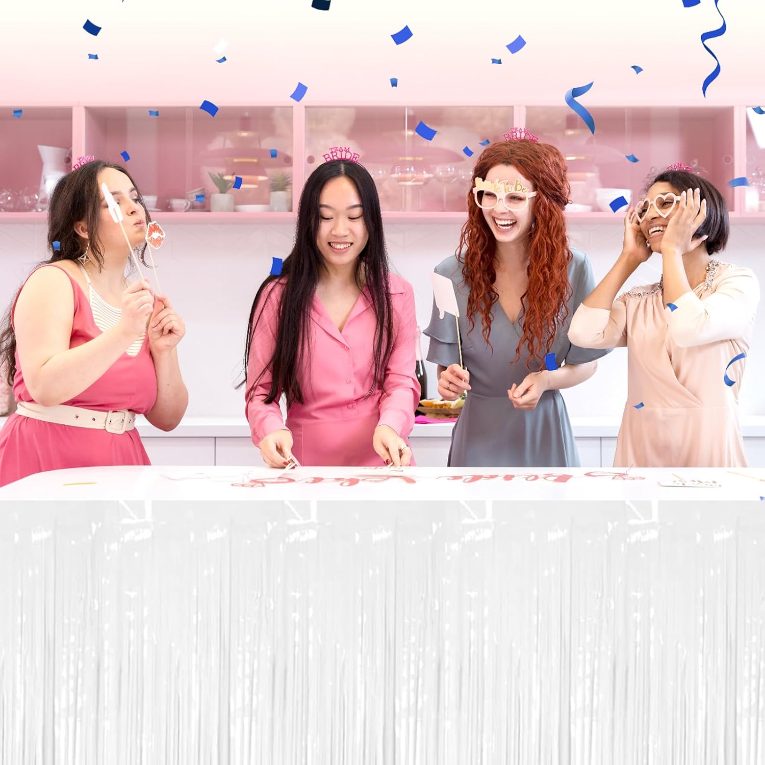 3 Pack 29 x108 Inch Macaron White Foil Fringe Table Skirts Metallic Banner for Tinsel Streamer Garland Backdrop for Parade Floats Wedding Thanksgiving Birthday Christmas New Year Party Decoration