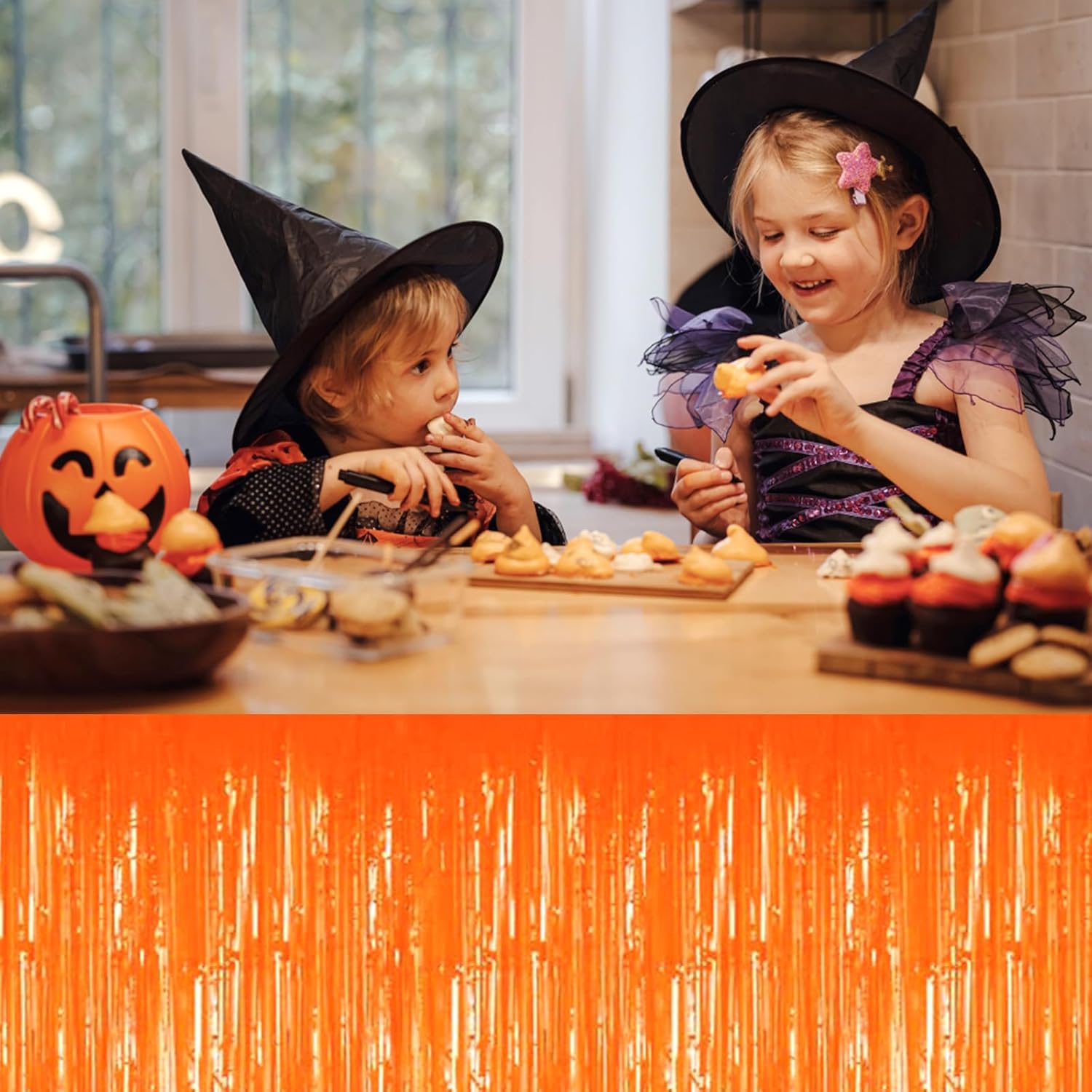 3 Pack 29 x108 Inch Macaron Orange Foil Fringe Table Skirts Metallic Banner for Tinsel Streamer Garland Backdrop for Parade Floats Wedding Thanksgiving Birthday Christmas New Year Party Decoration