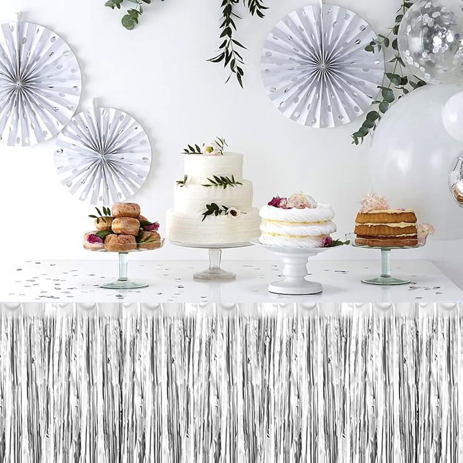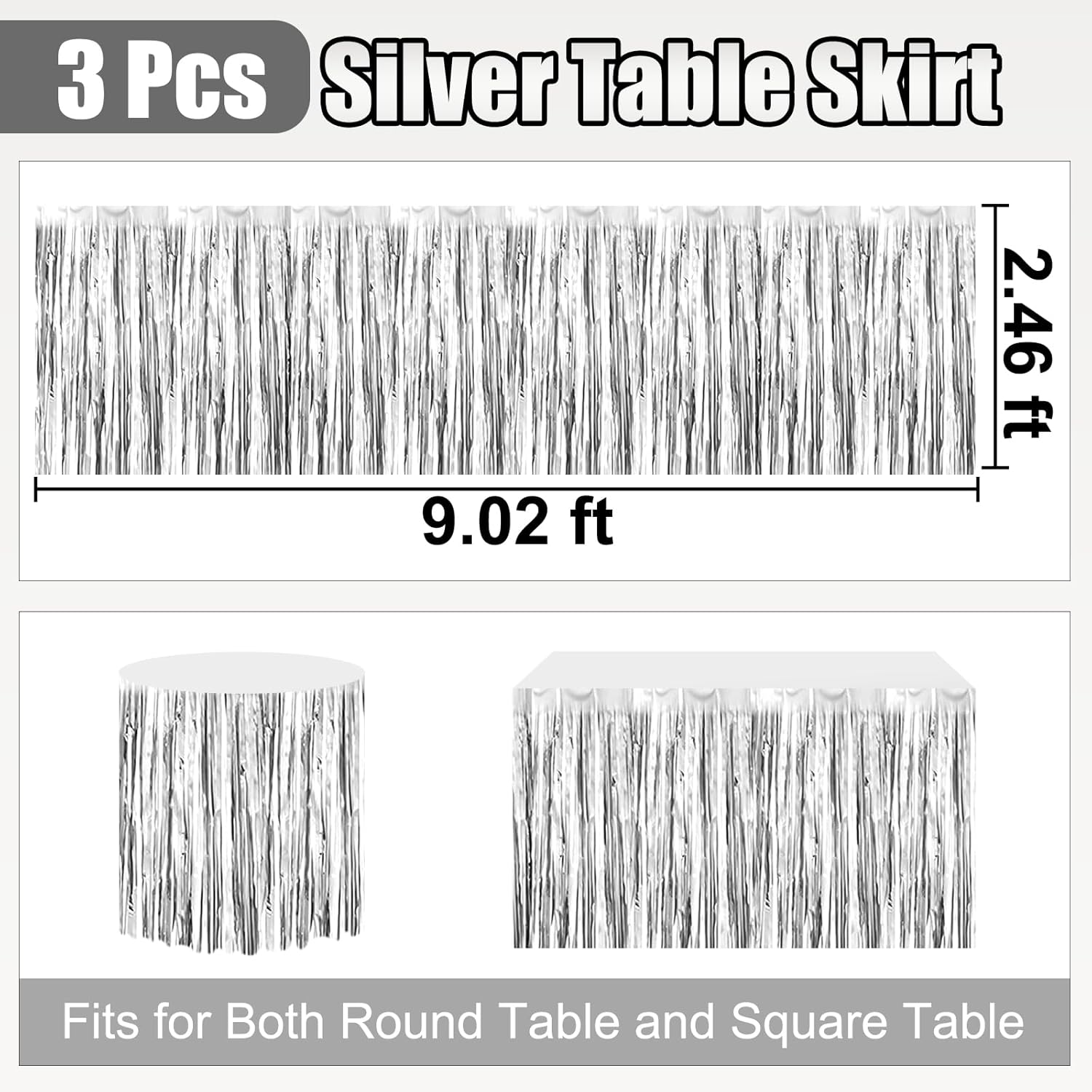 3 Pack 29 x108 Inch Silver Foil Fringe Table Skirts Metallic Banner for Tinsel Streamer Garland Backdrop for Parade Floats Wedding Thanksgiving Birthday Christmas Halloween New Year Party Decoration