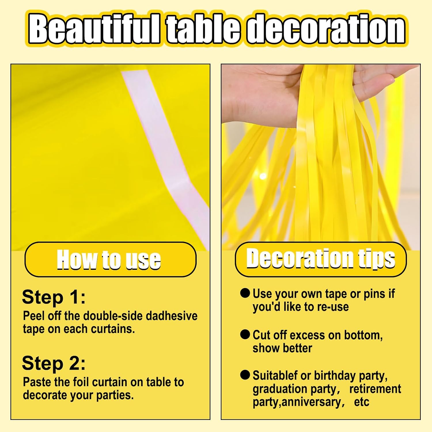 3 Pack 29 x108 Inch Macaron Yellow Foil Fringe Table Skirts Metallic Banner for Tinsel Streamer Garland Backdrop for Parade Floats Wedding Thanksgiving Birthday Christmas New Year Party Decoration