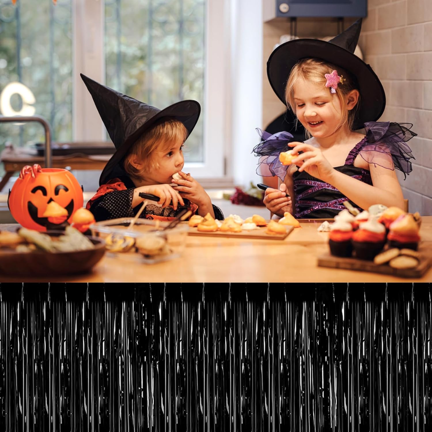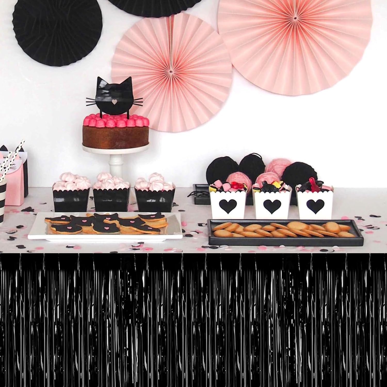 3 Pack 29 x108 Inch Black Foil Fringe Table Skirts Metallic Banner for Tinsel Streamer Garland Backdrop for Parade Floats Wedding Thanksgiving Birthday Christmas Halloween New Year Party Decoration